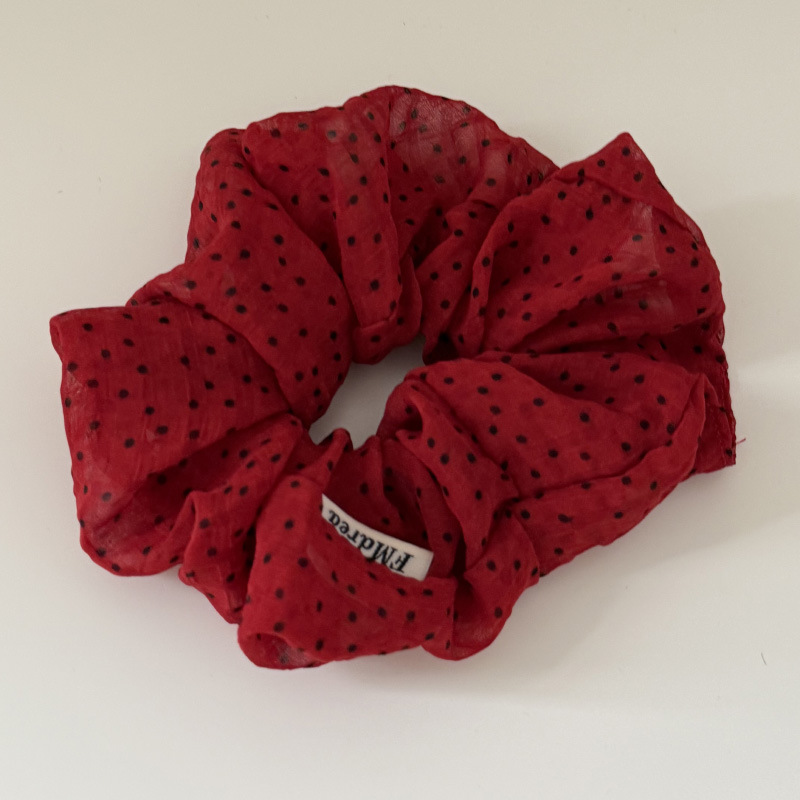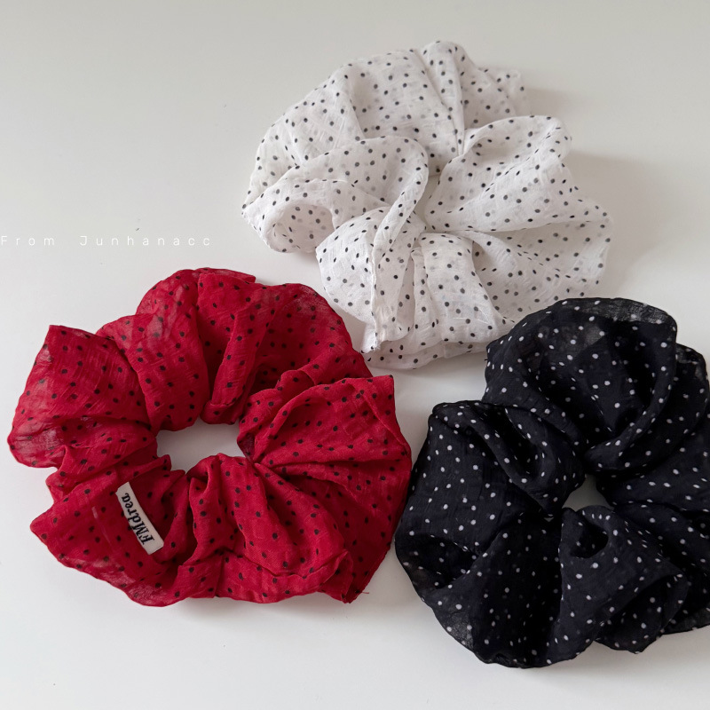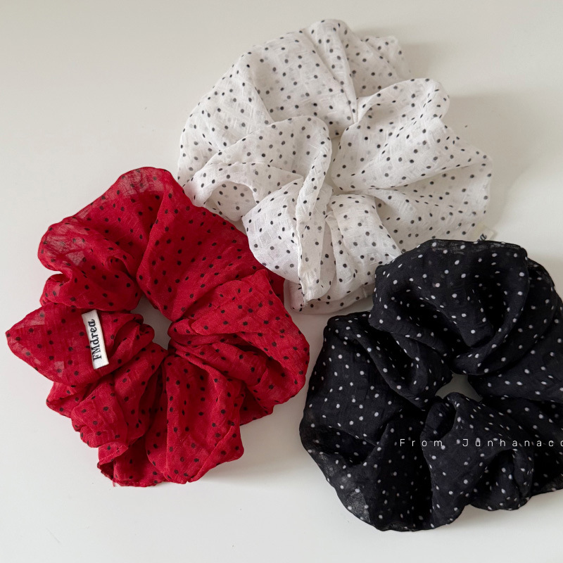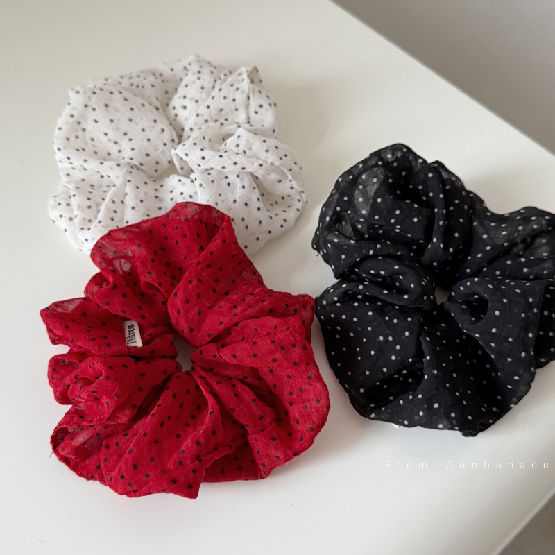 法式缎面波点发圈低马尾红色扎头发皮筋温柔气质高级大肠圈
