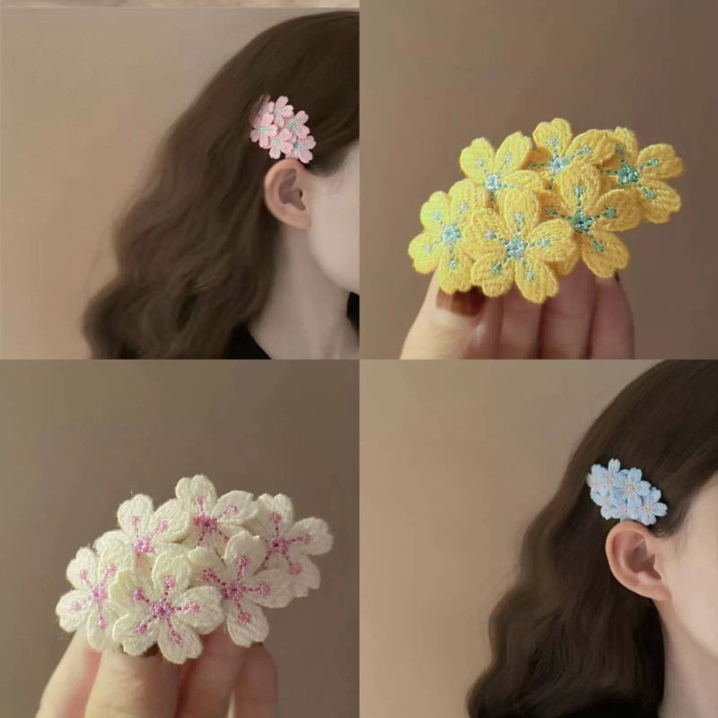 青涩春日少女甜美樱花发夹针织刺绣花朵刘海侧边夹碎发饰新款头饰