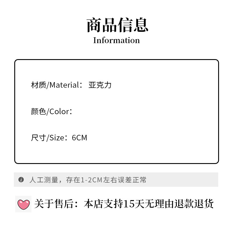 材质: 亚克力 处理工艺: 手工 发夹分类: 边夹 产地: 义乌 有可授权的自有品牌: 是 是否跨境出口专供货源: 是 流行元素: 线条 上市年份/季节: 2025夏季 风格: 时尚OL 风格分类: 时尚通勤 主要销售地区: 欧洲,南美,东南亚,北美 适用人群: 女式 流行元素分类: 几何 重量: 0.05 kg/个