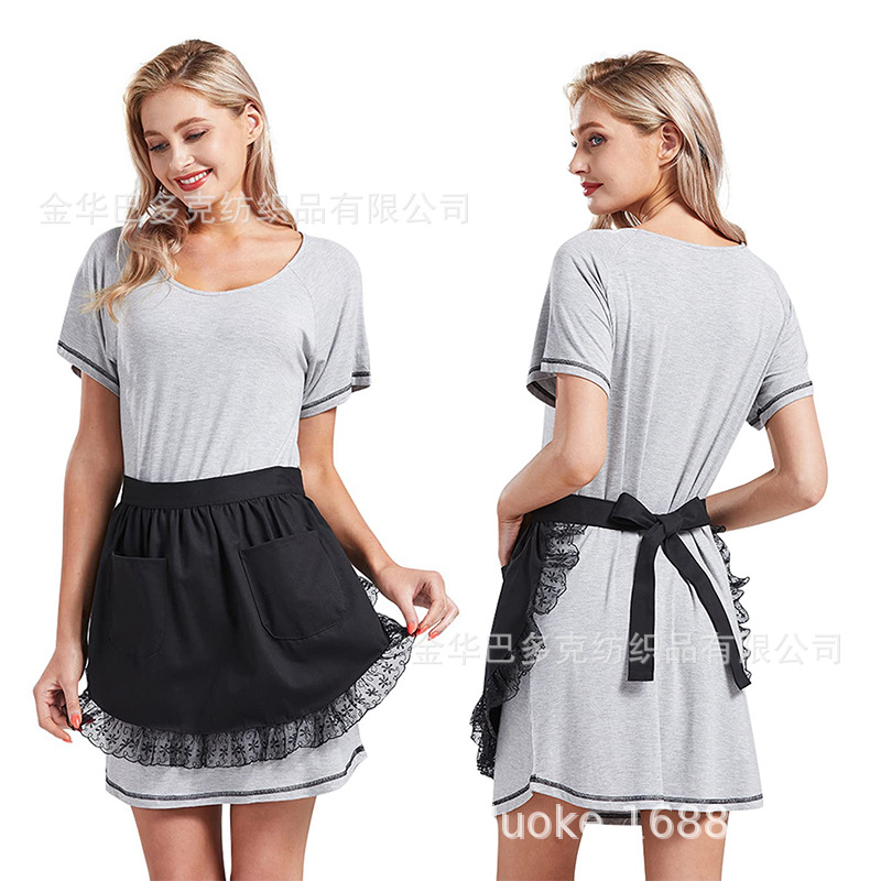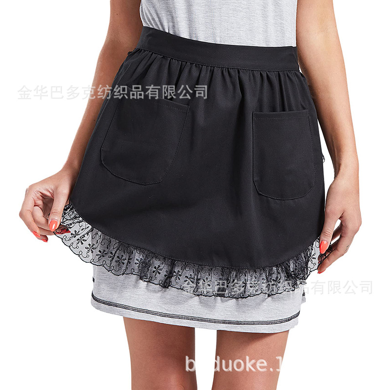女仆围裙家居半身公主围裙欧式风纯白半身荷叶花边双口袋跨境专供 投诉