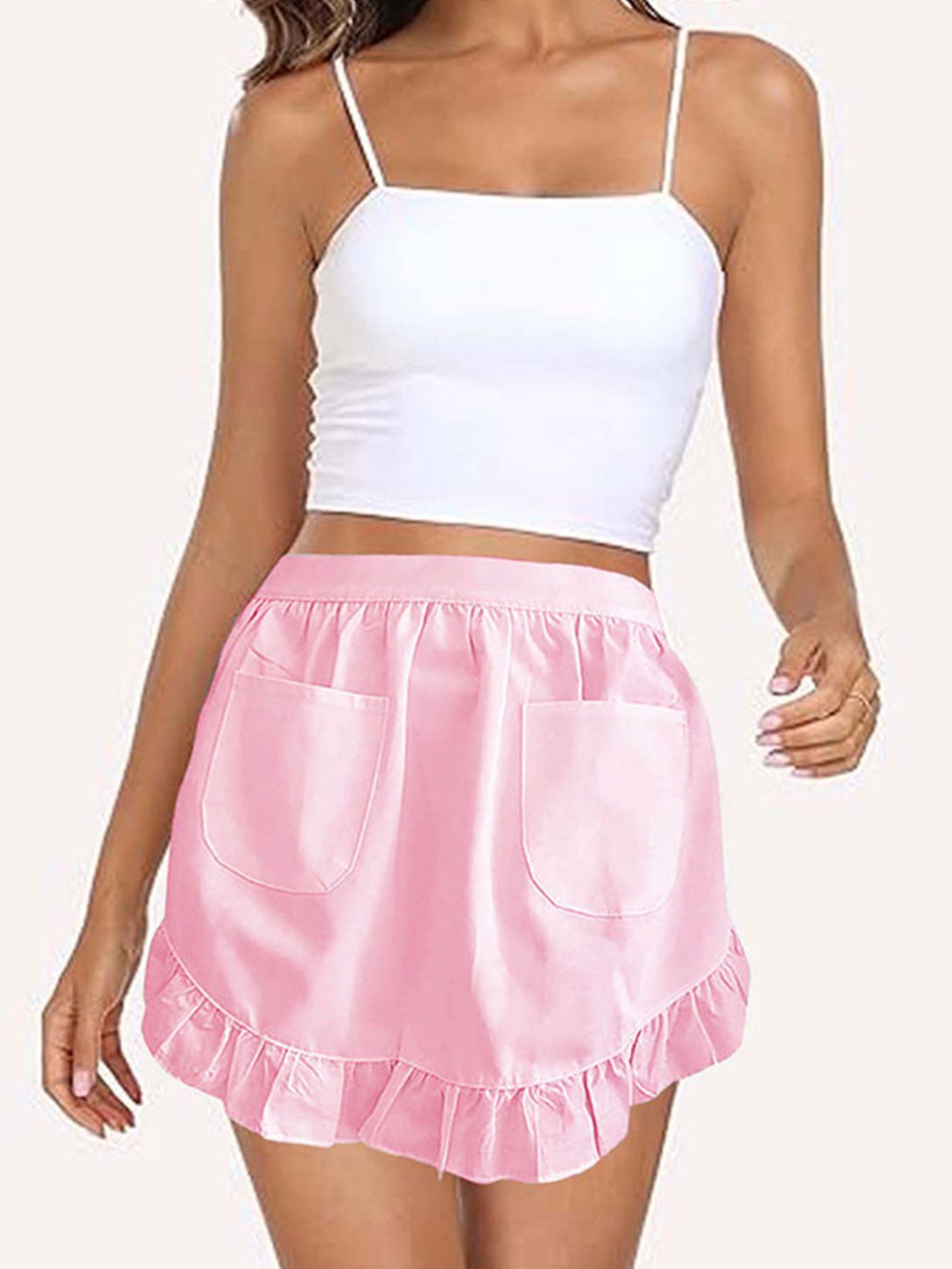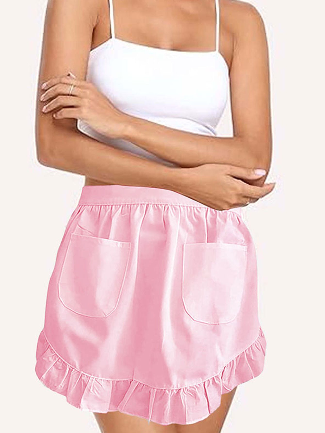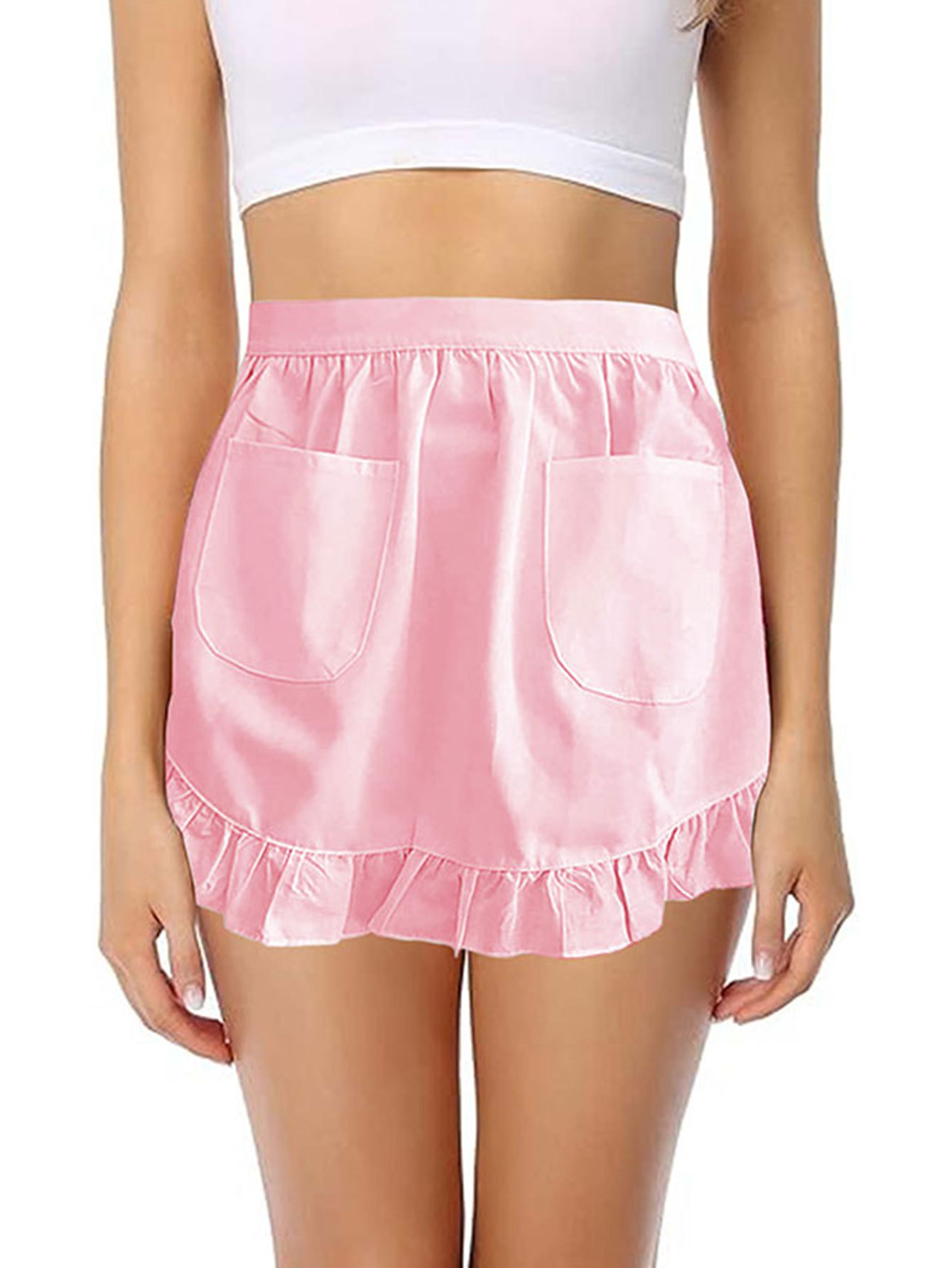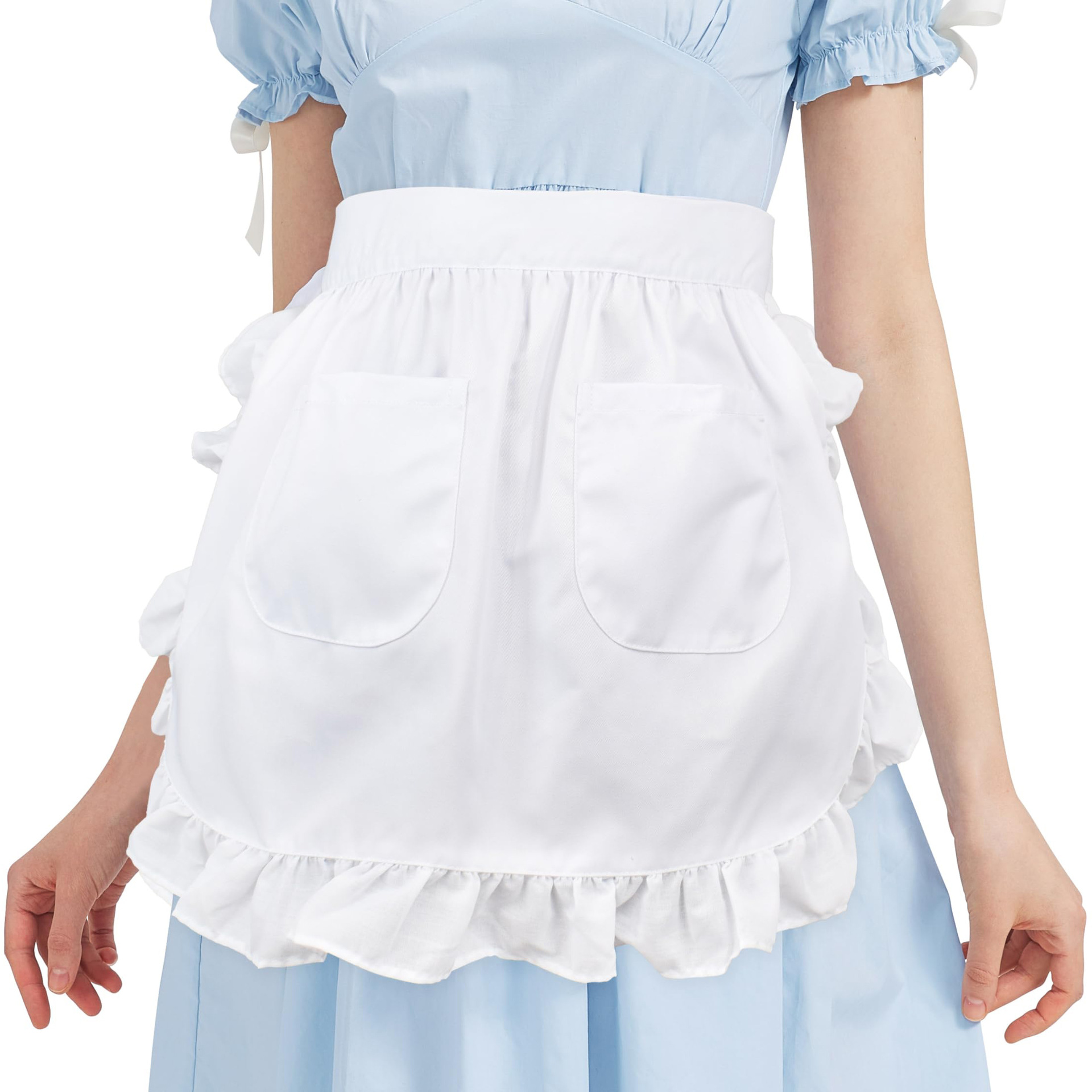 女仆围裙家居半身公主围裙欧式风纯白半身荷叶花边双口袋跨境专供