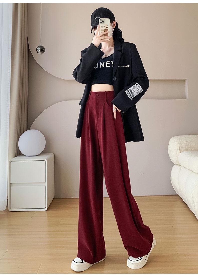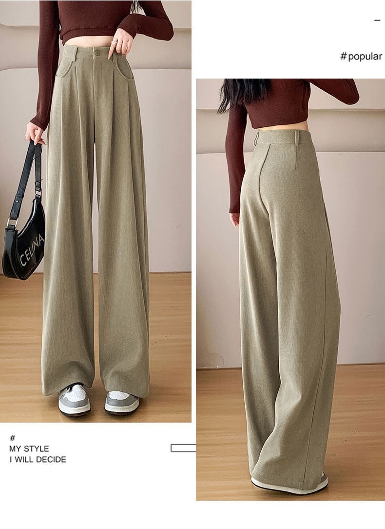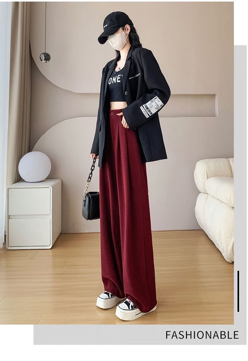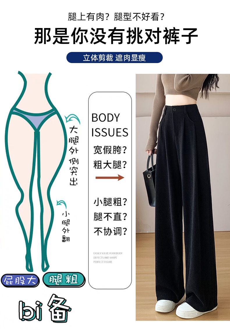 新款职业西装裤女秋冬加厚休闲高腰垂感阔腿裤大西装裤子高个子 投诉