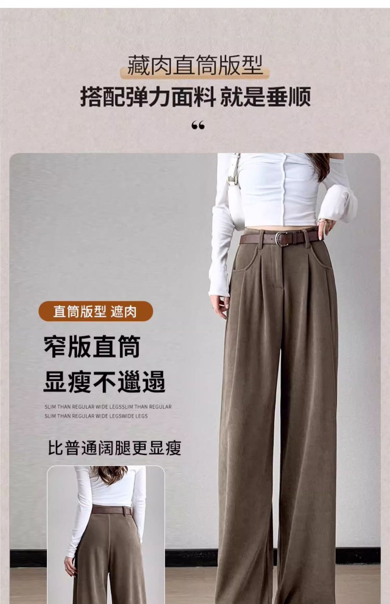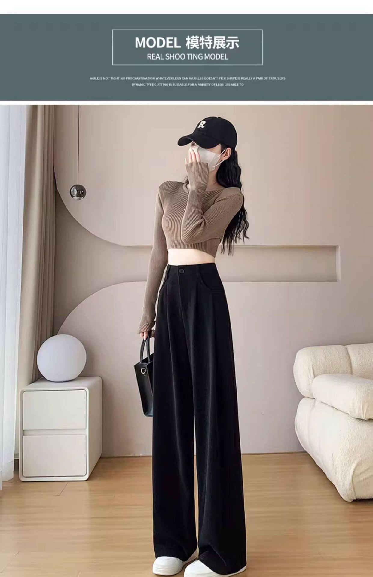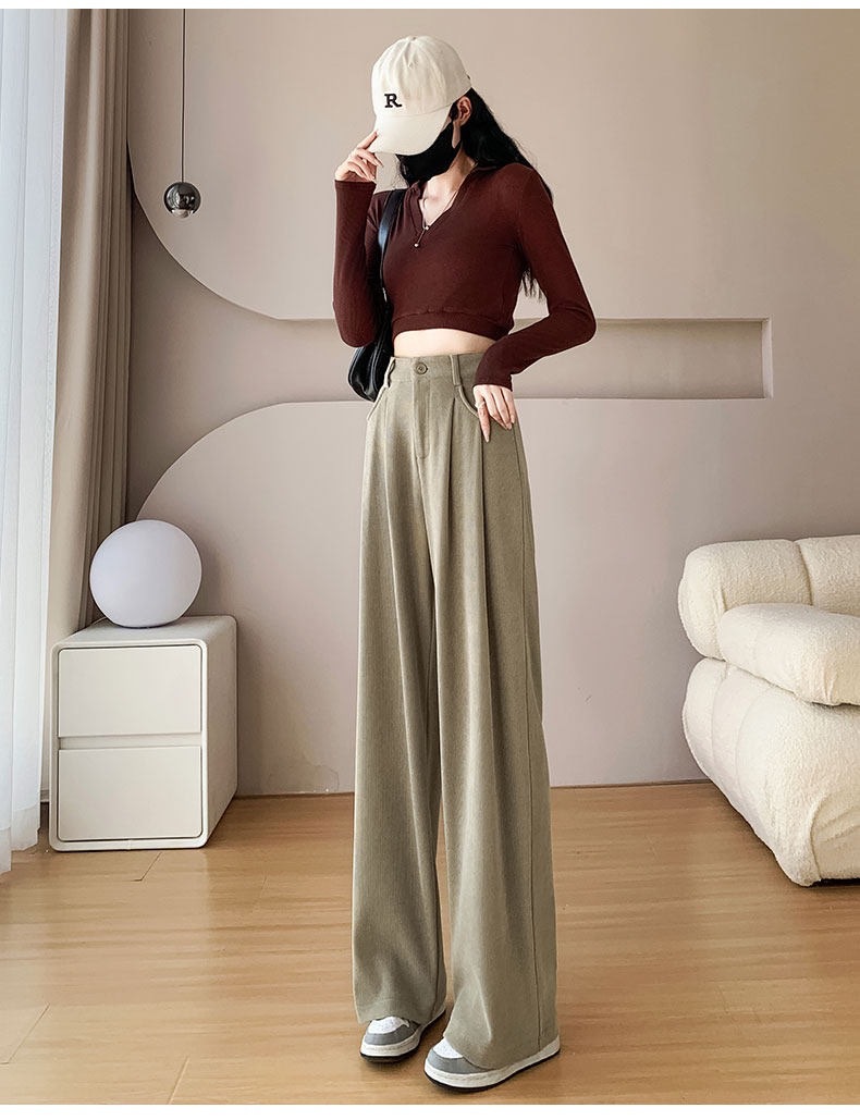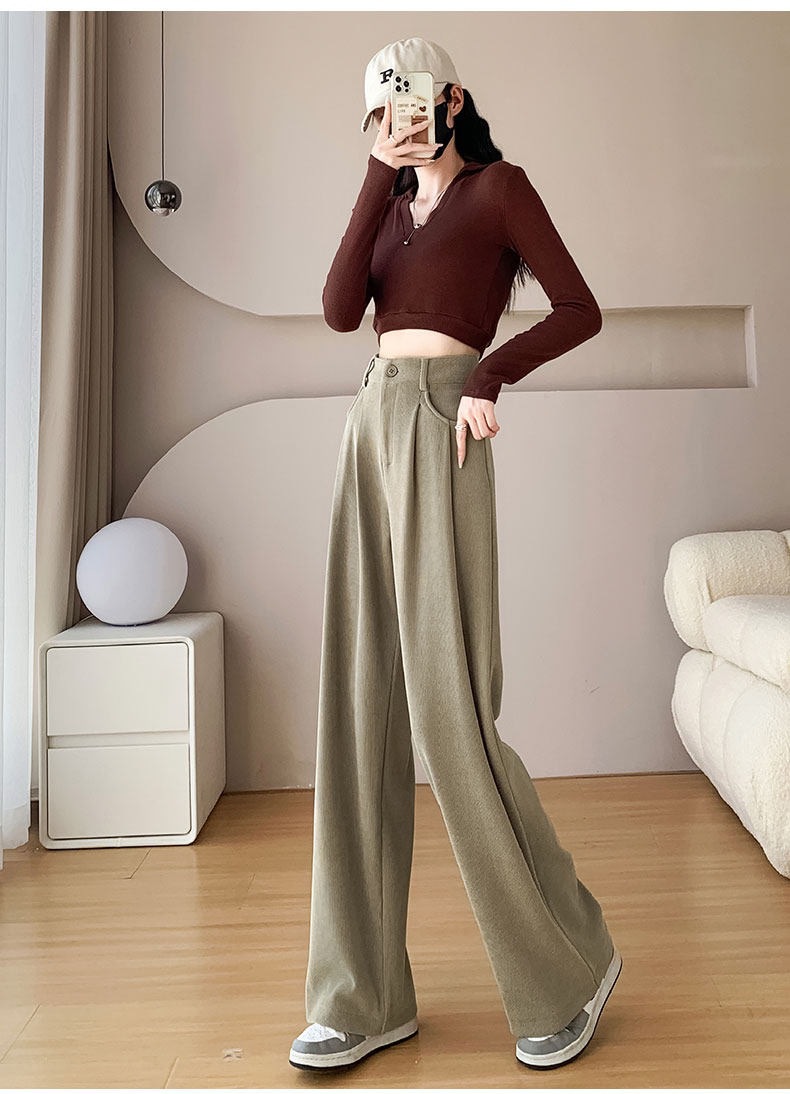 新款职业西装裤女秋冬加厚休闲高腰垂感阔腿裤大西装裤子高个子 投诉