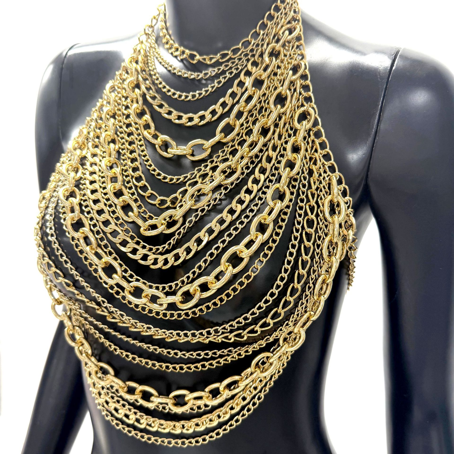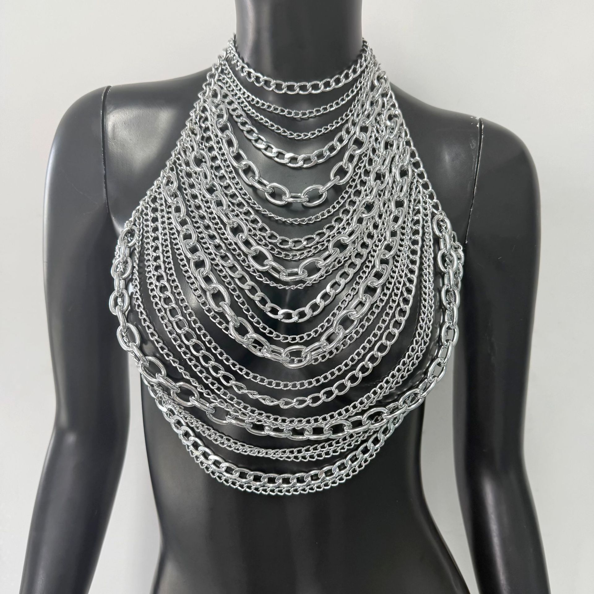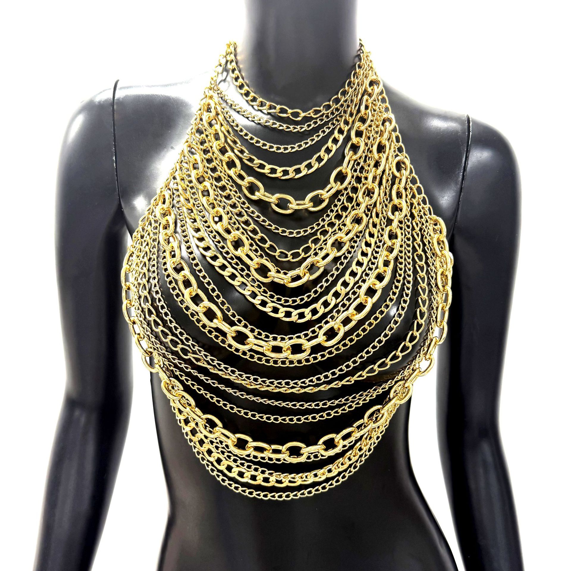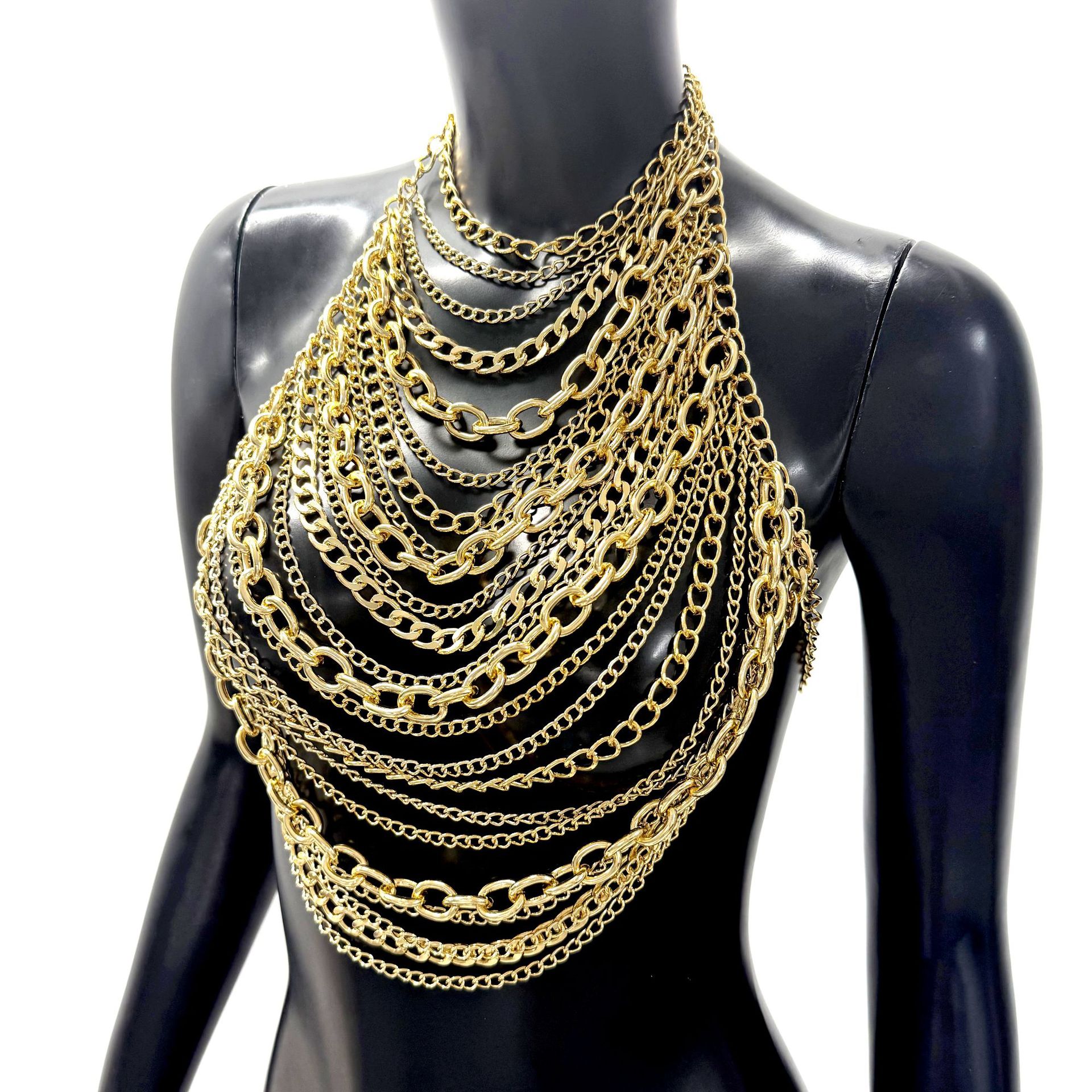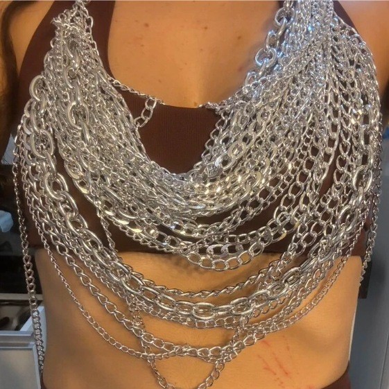 亚马逊热销身体链金属多层铝链个性音乐节胸链跨境辣妹身体链胸链