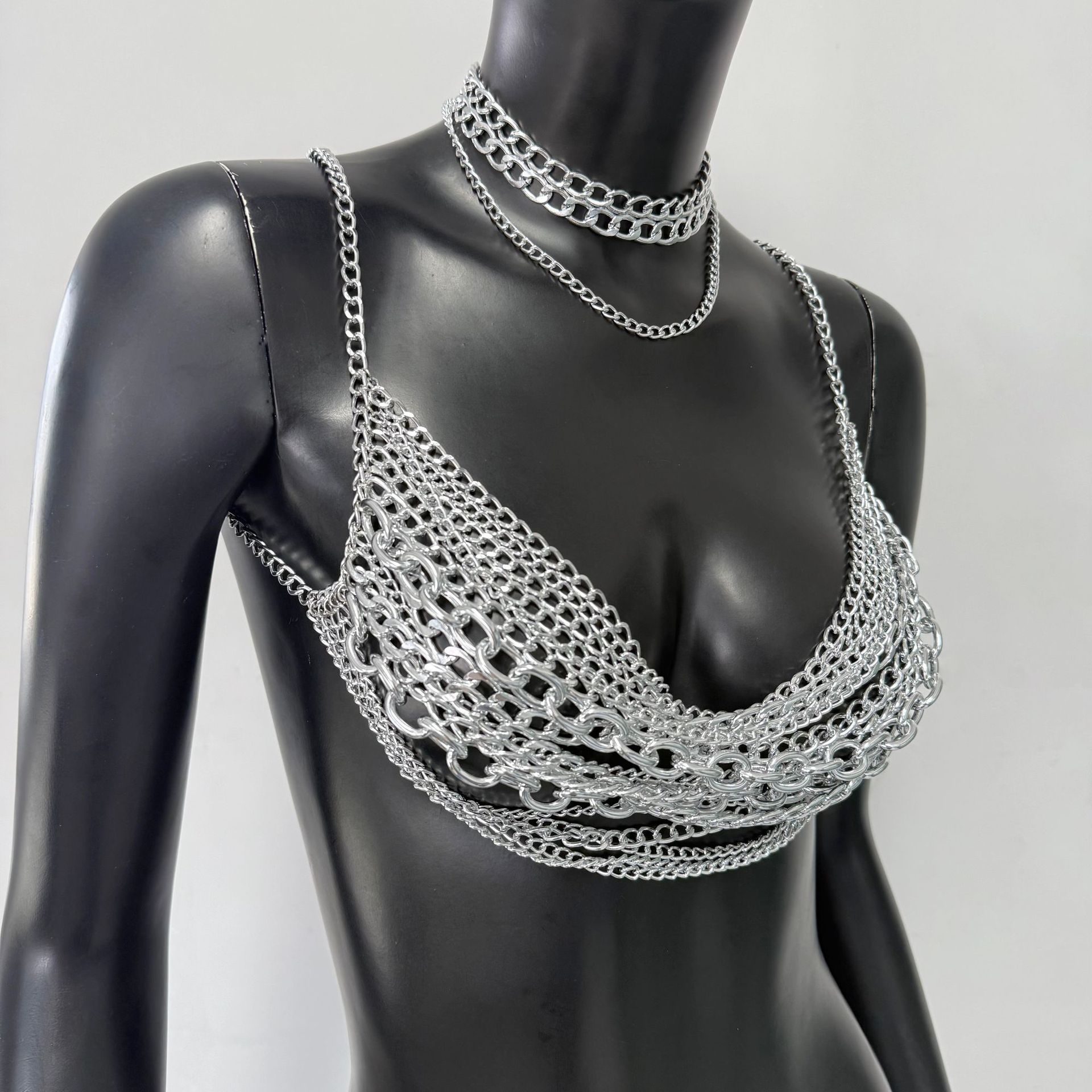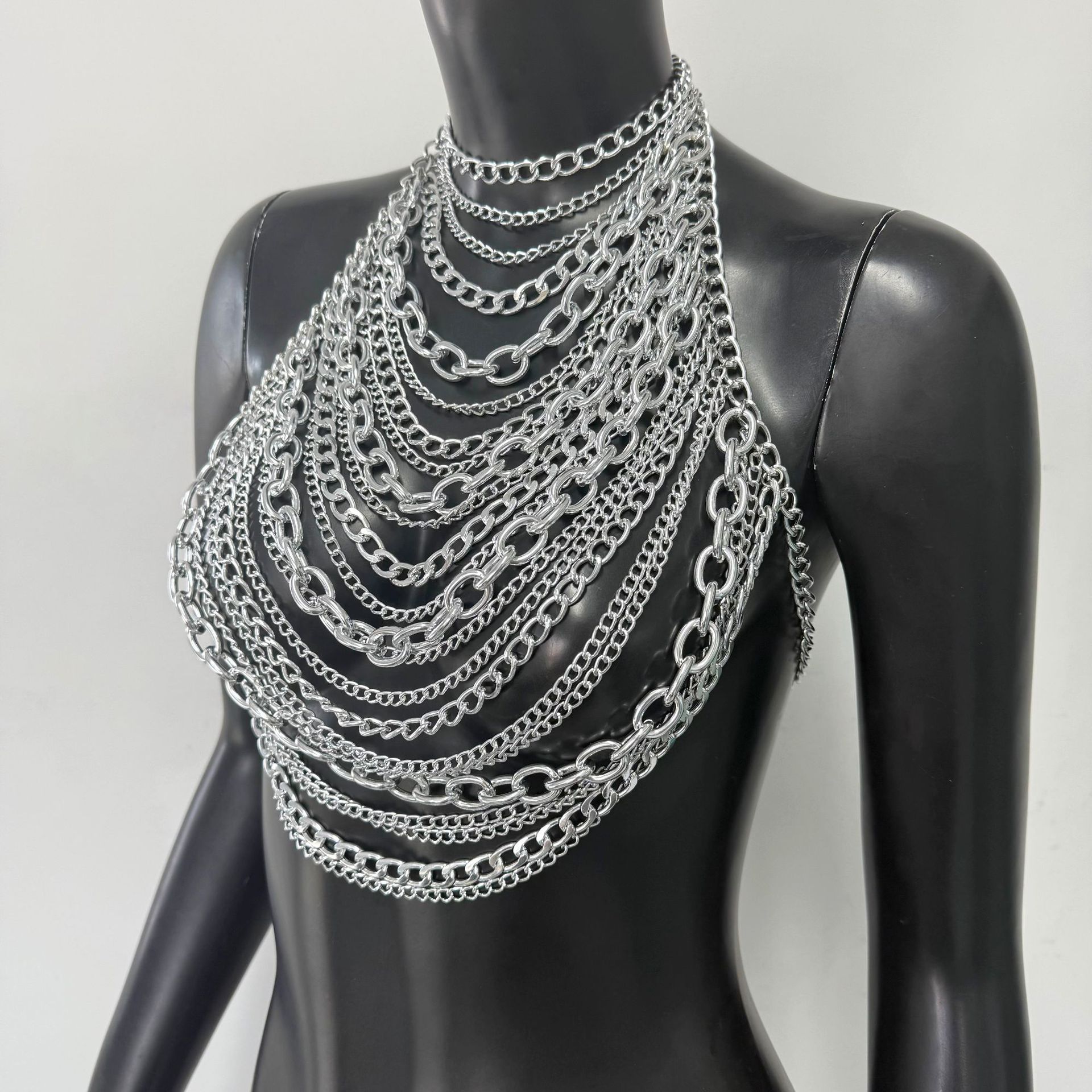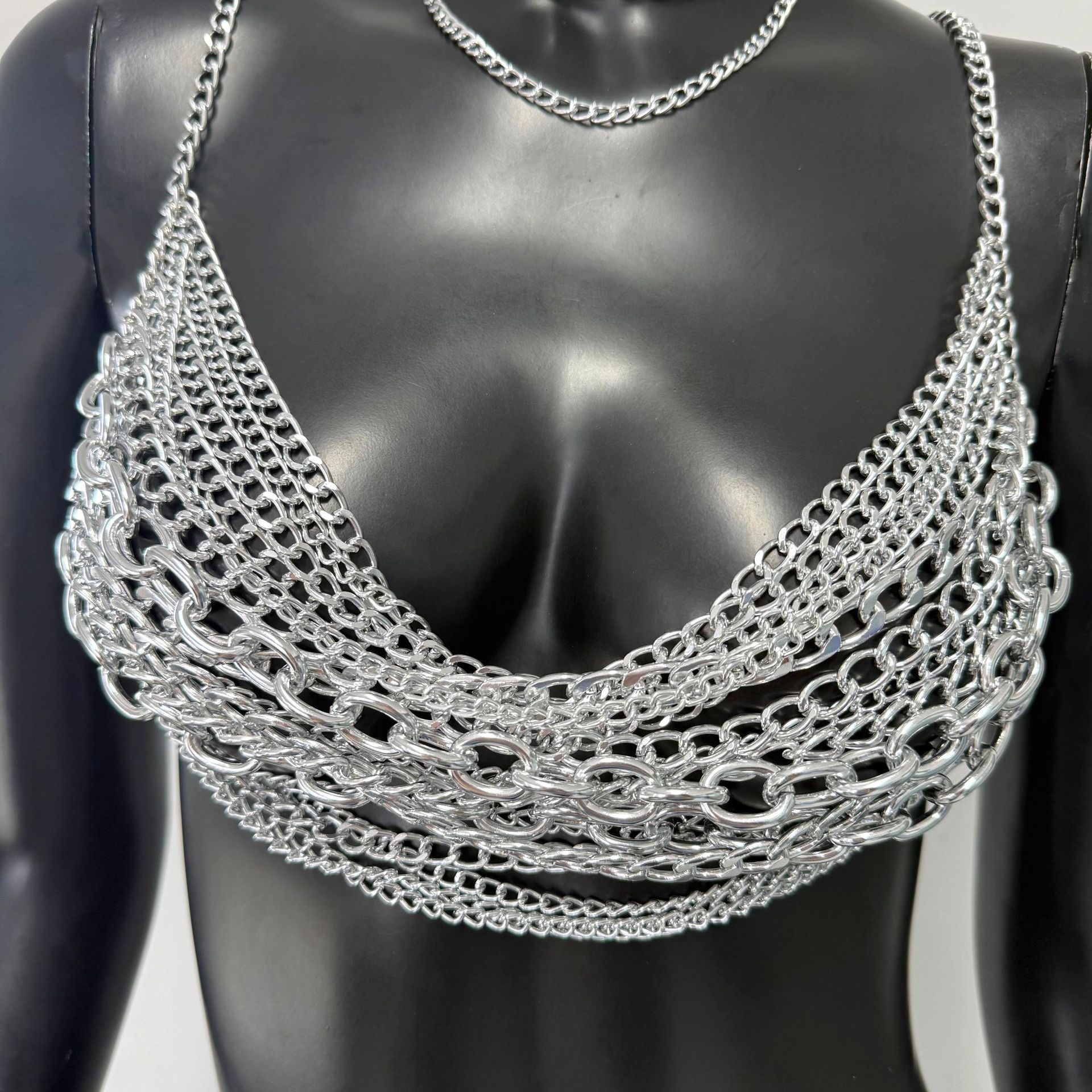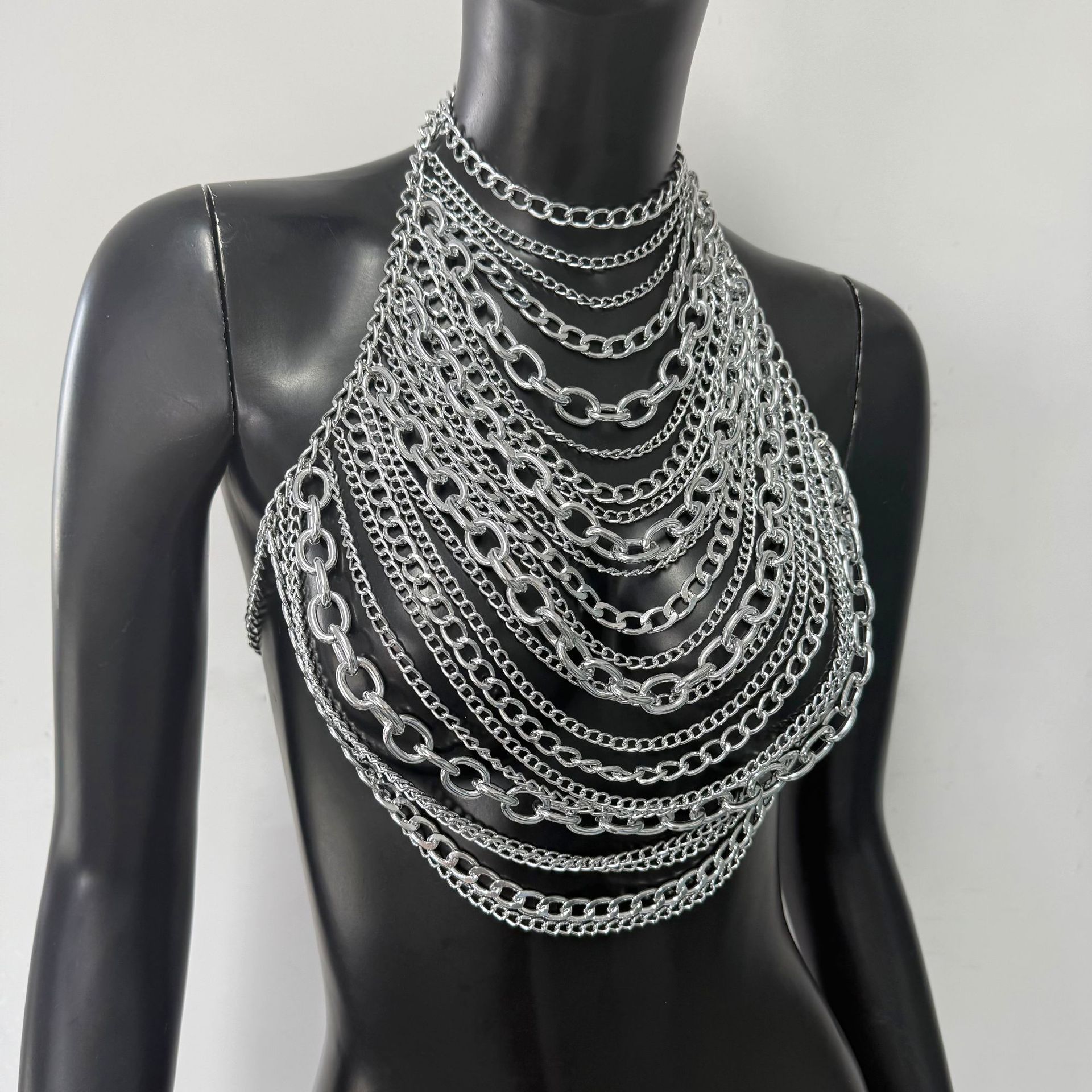 亚马逊热销身体链金属多层铝链个性音乐节胸链跨境辣妹身体链胸链