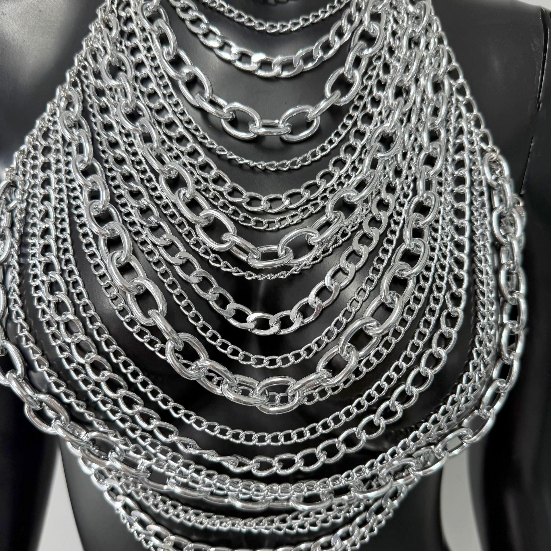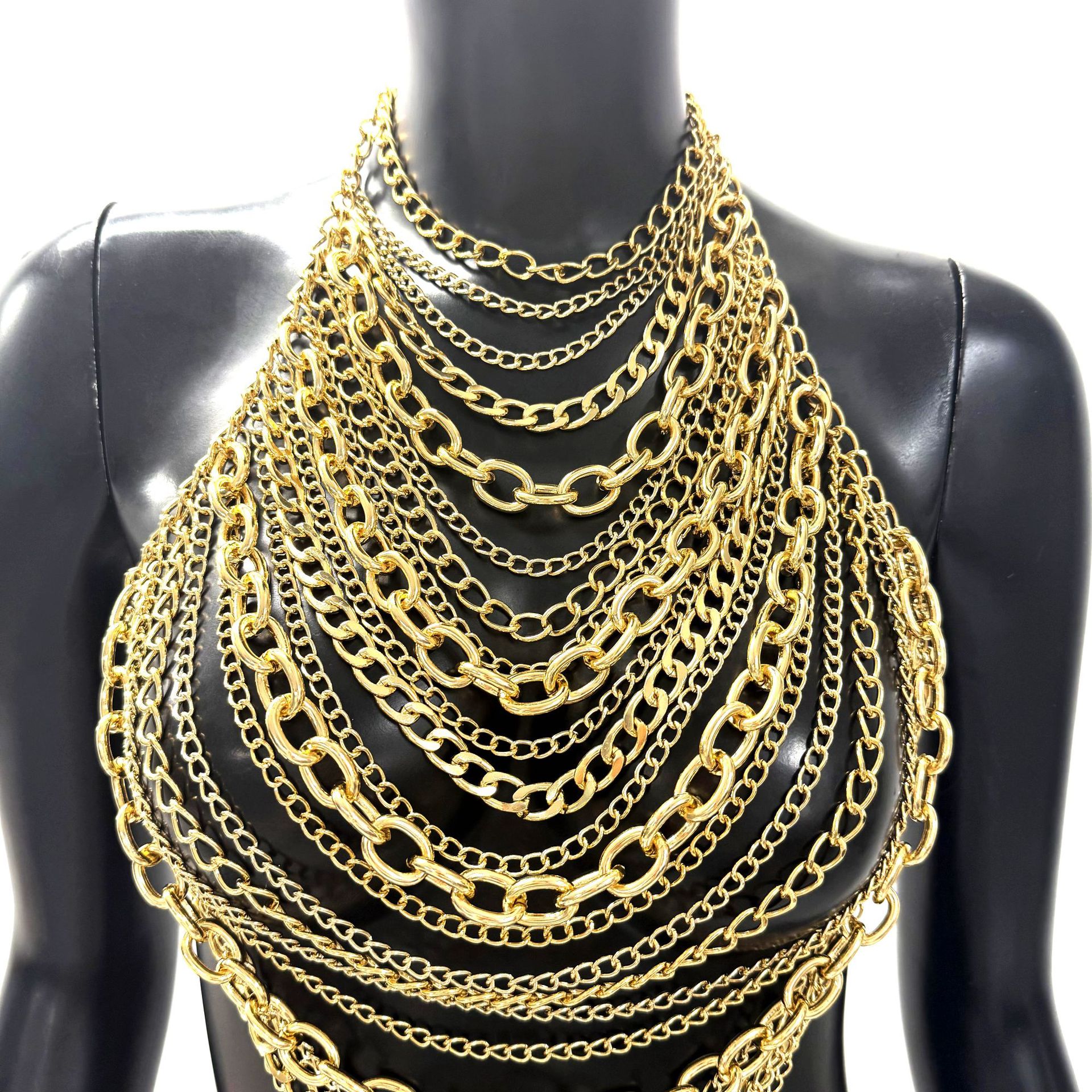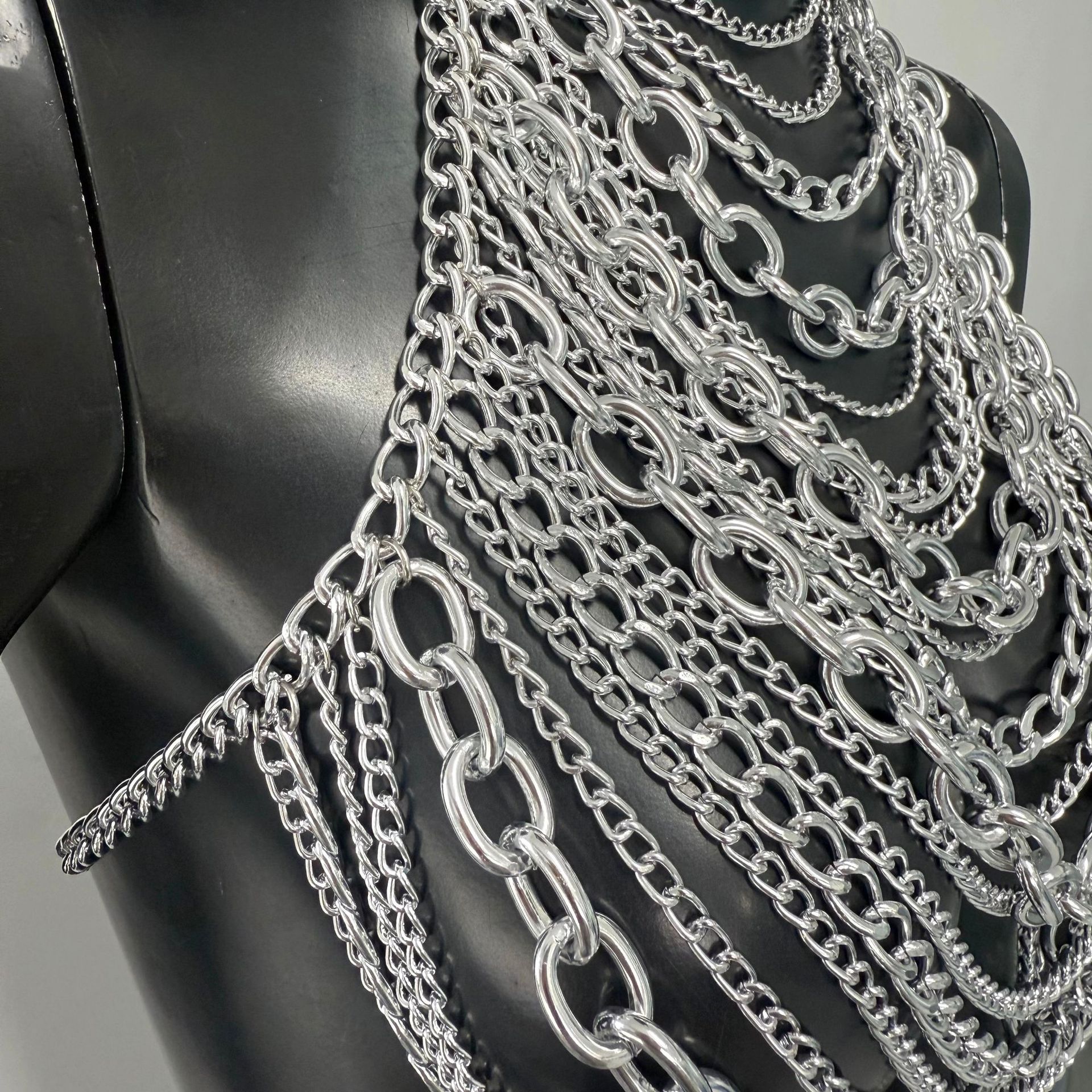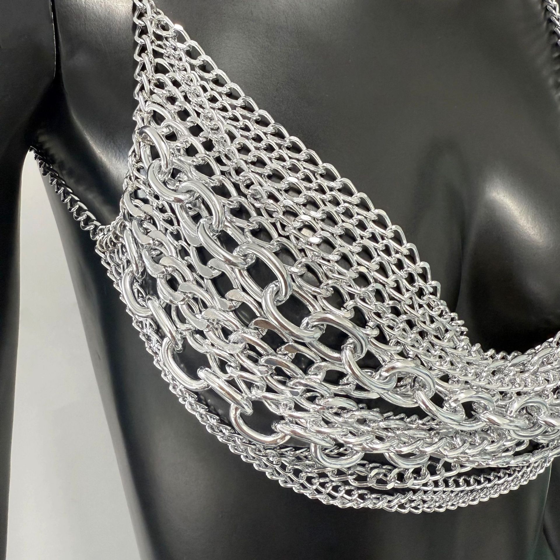 亚马逊热销身体链金属多层铝链个性音乐节胸链跨境辣妹身体链胸链