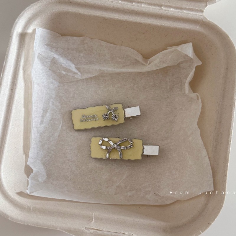 韩系黄色自制闪钻发夹甜酷风侧边头饰发卡刘海气质百搭边夹发饰