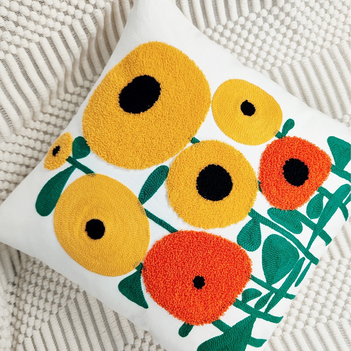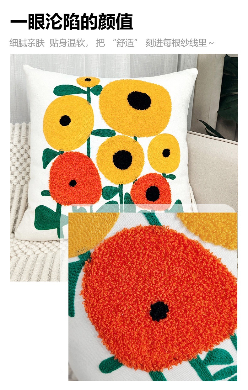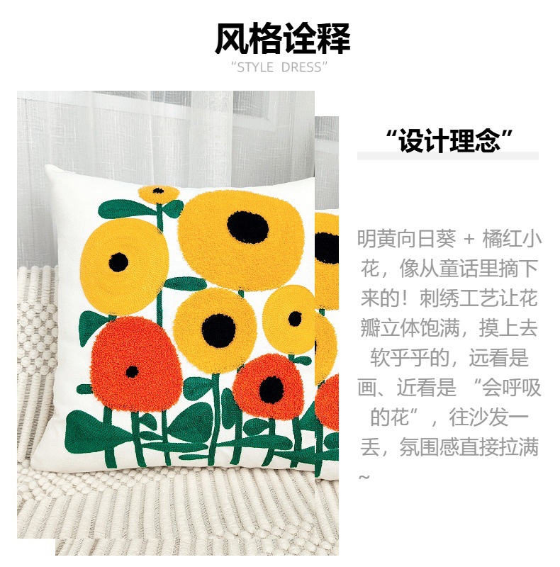 想给家添点治愈又可爱的小美好?这款花朵刺绣抱枕套,直接把 “向日葵花田” 搬回家!45×45cm 黄金尺寸,适配各种场景~