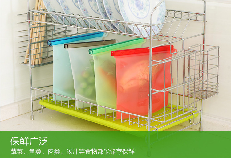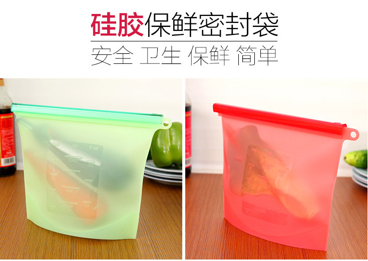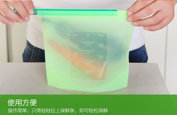 硅胶保鲜袋,可以装各种食物。用途:冰箱循环保鲜袋。