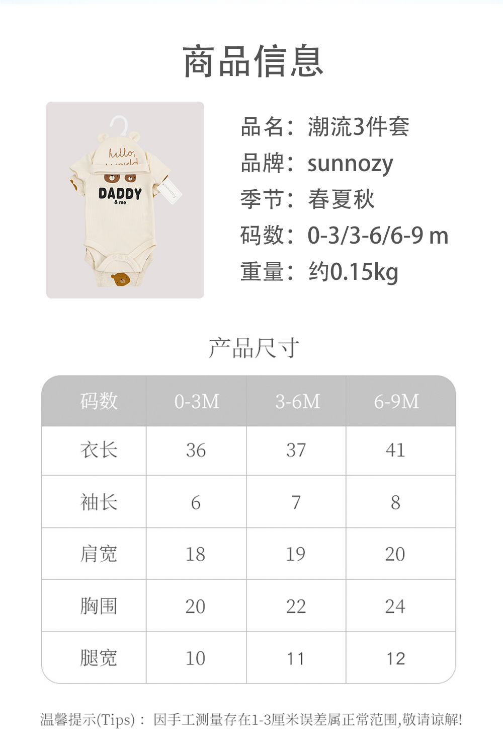 | 0-3M(52CM)/3-6M(59CM)/6-9M(66CM) | ¥4800 | 270套可售 |