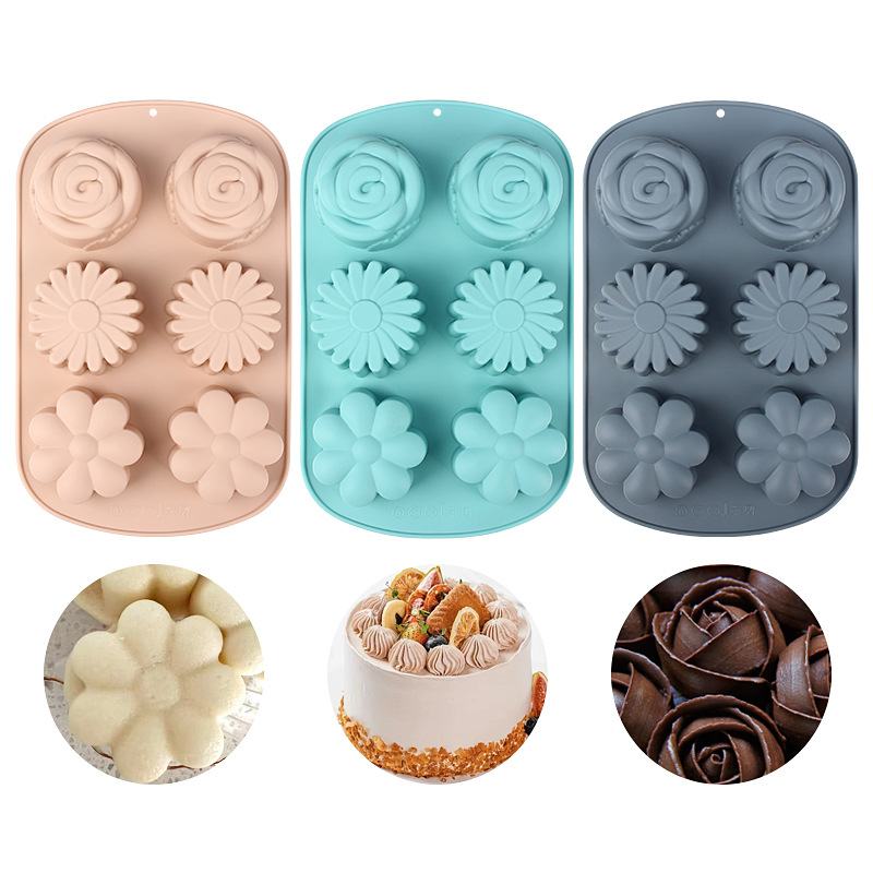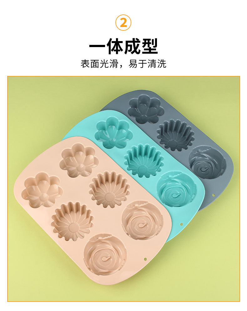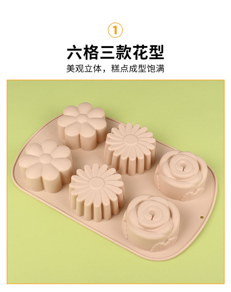 跨境现货硅胶蛋糕模具花型6连硅胶模具蒸糕米糕易脱模烘焙工具