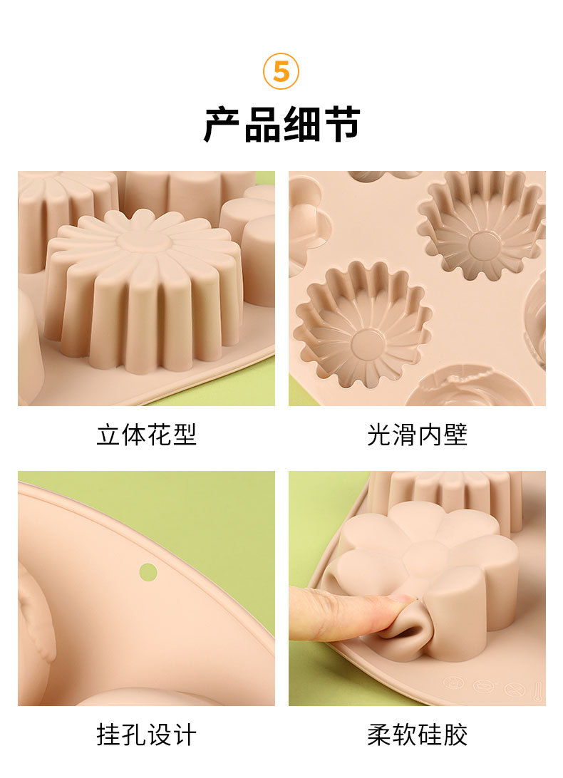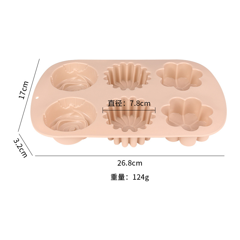 跨境现货硅胶蛋糕模具花型6连硅胶模具蒸糕米糕易脱模烘焙工具 English | 投诉