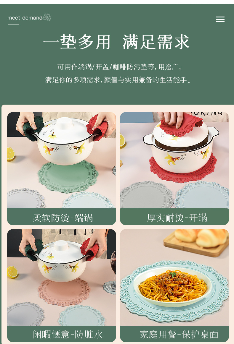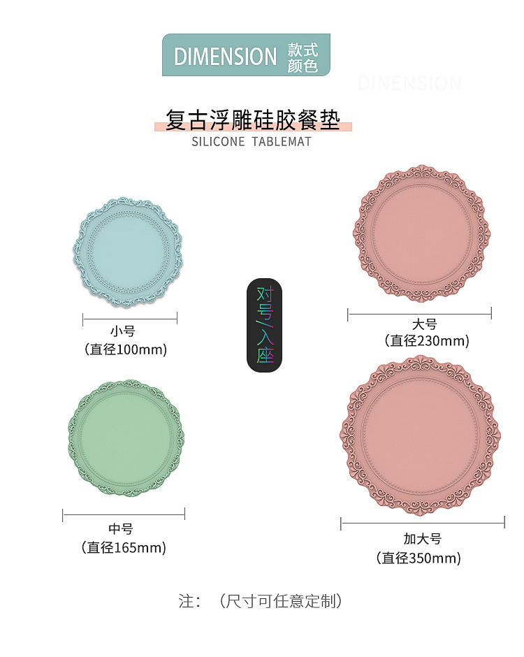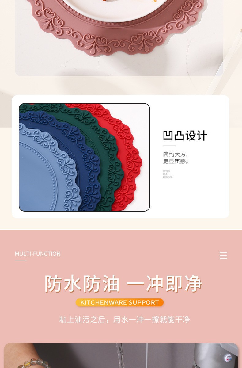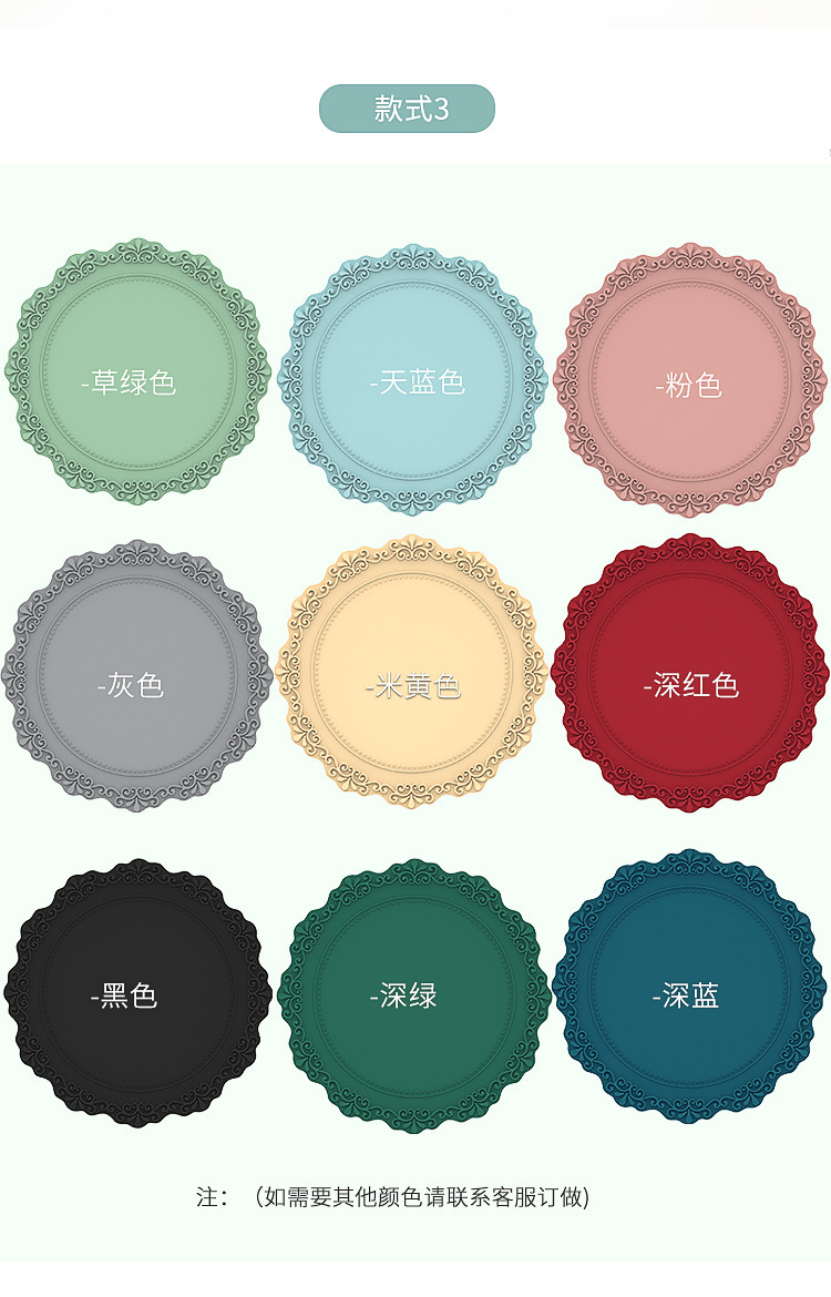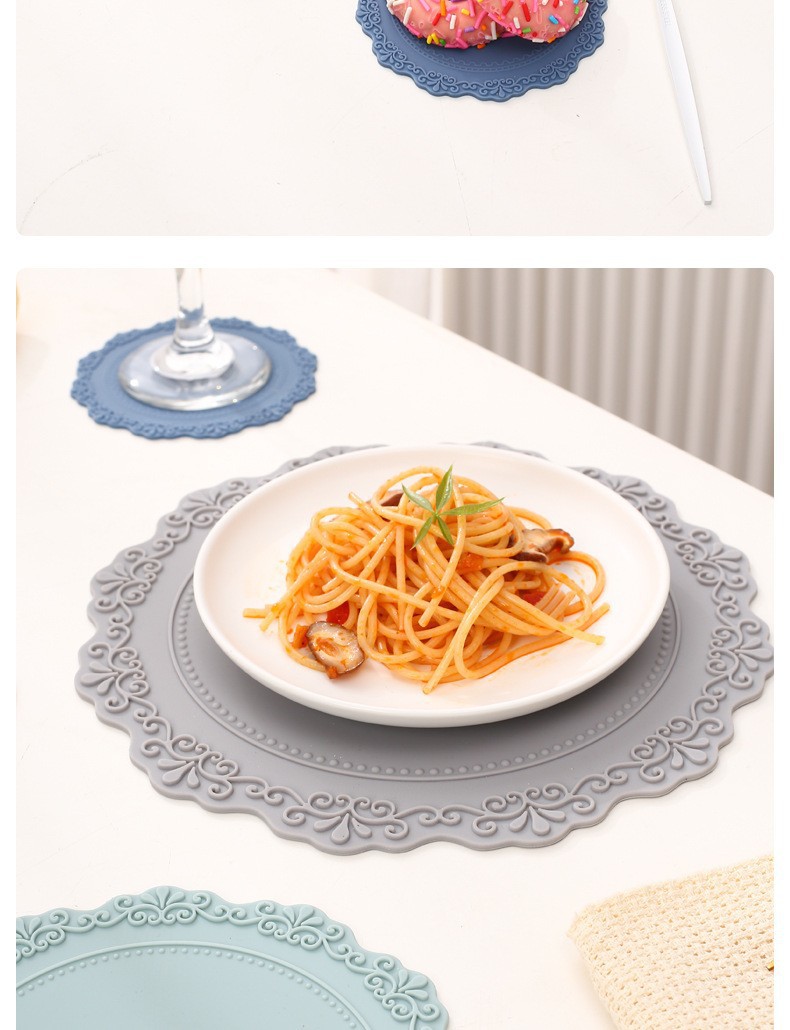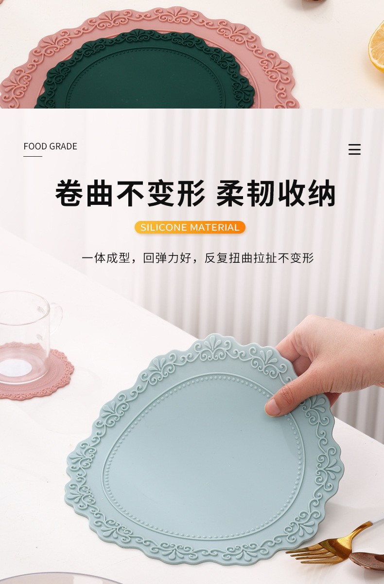 【使用场合】:搭配各种风格的家具,可以放在茶具、杯子、餐具、花瓶和烟灰缸等下面,也可作为餐桌和茶几的装饰品。