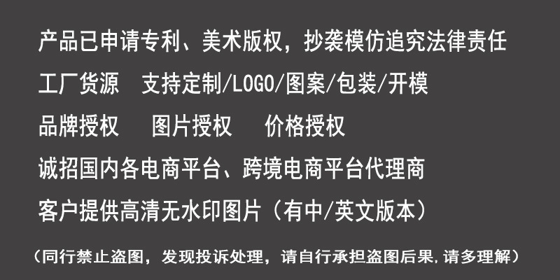 产品已申请专利、美术版权,抄袭模仿追究法律责任!
