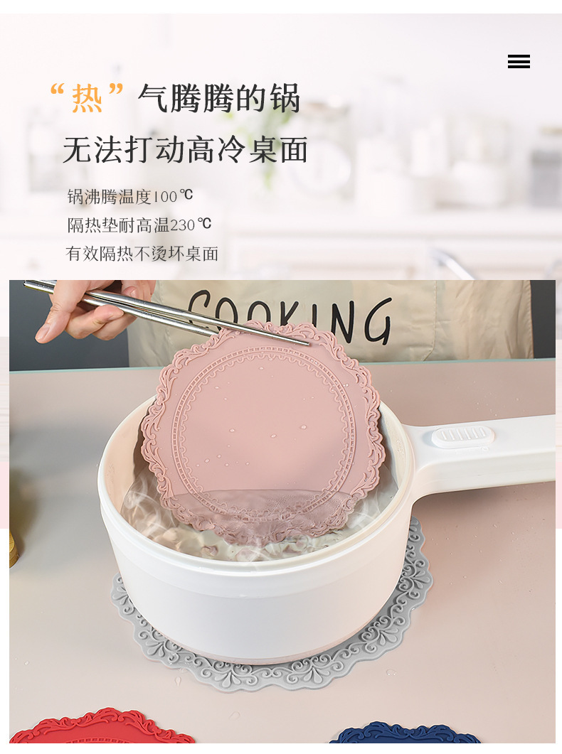 【材料】:食品级珀金硅胶,不含 BPA。家庭有儿童可将垫子定期水煮消毒,是安全的。