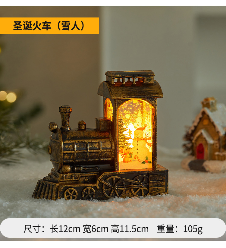 跨境圣诞节装饰摆件圣诞老人注水刷金小火车摆件小夜灯圣诞节礼物