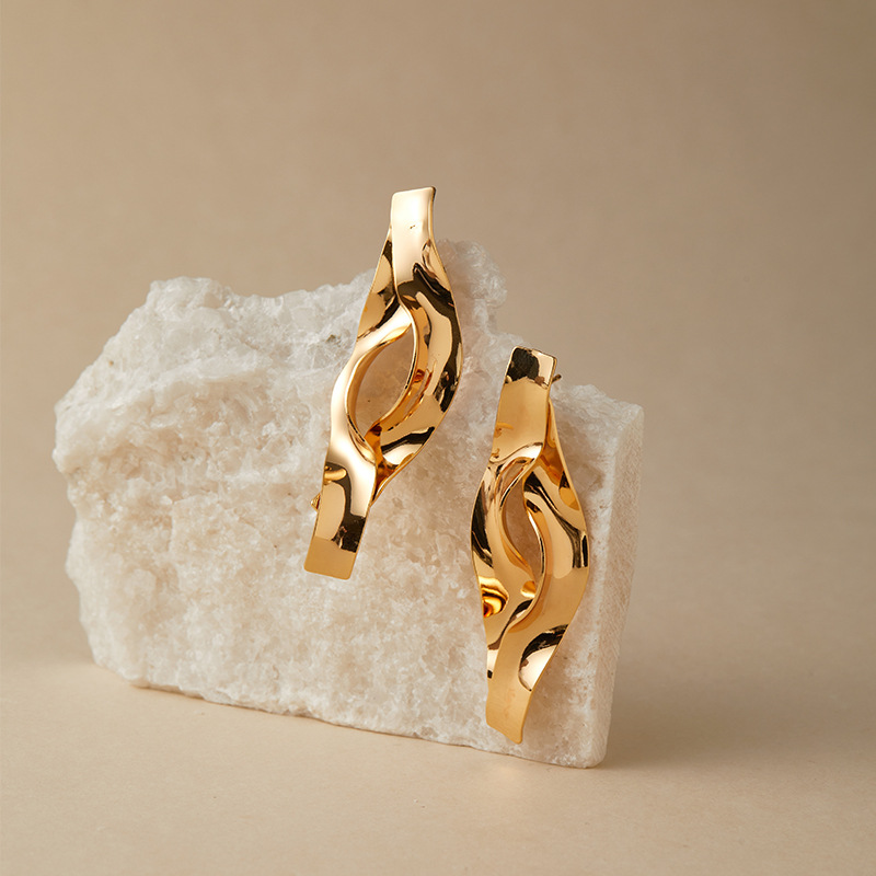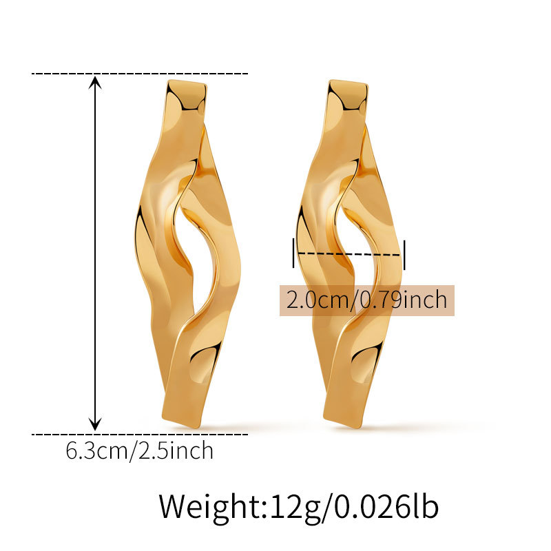 跨境不规则肌理耳环铜镀18K真金个性大号中性风耳饰褶皱液态设计