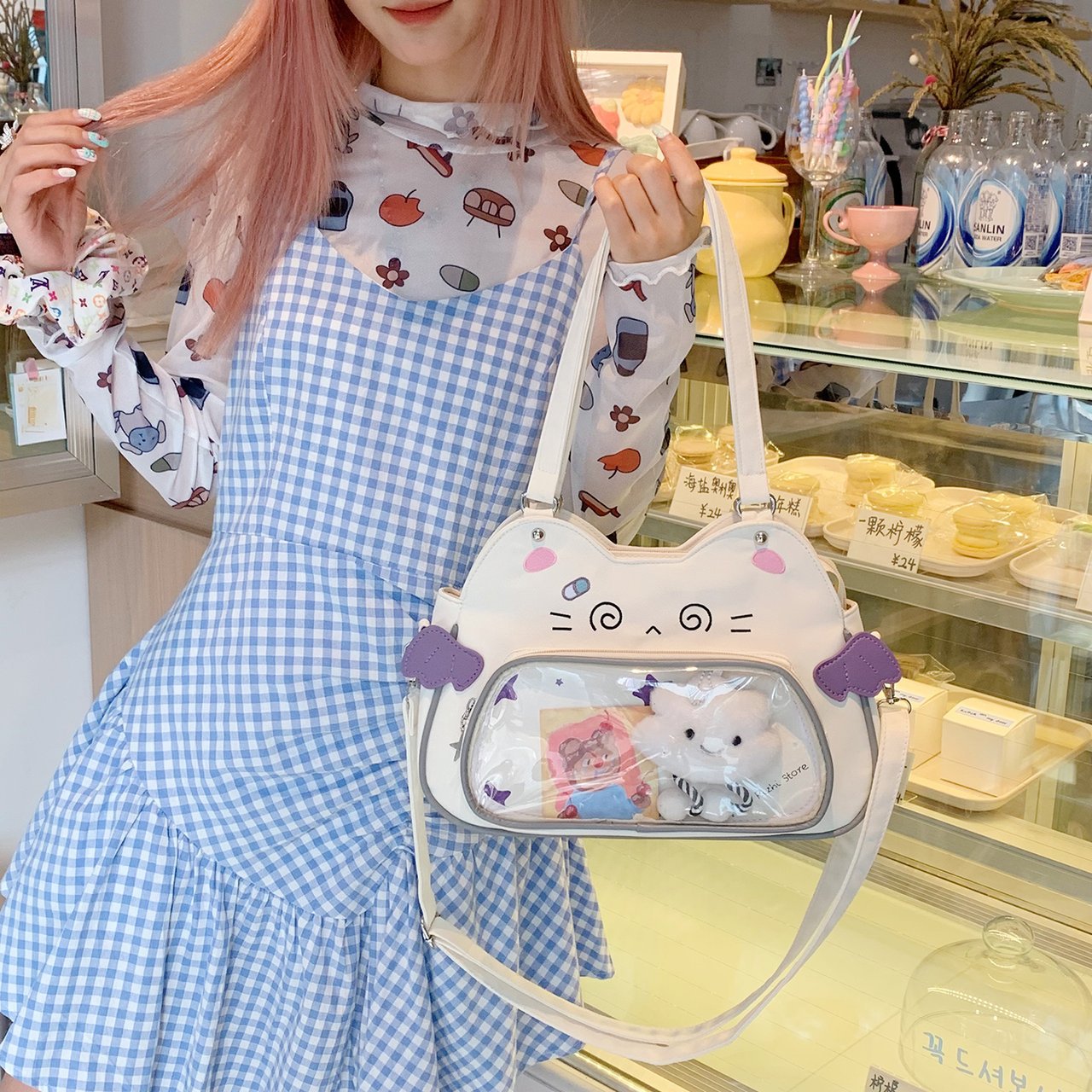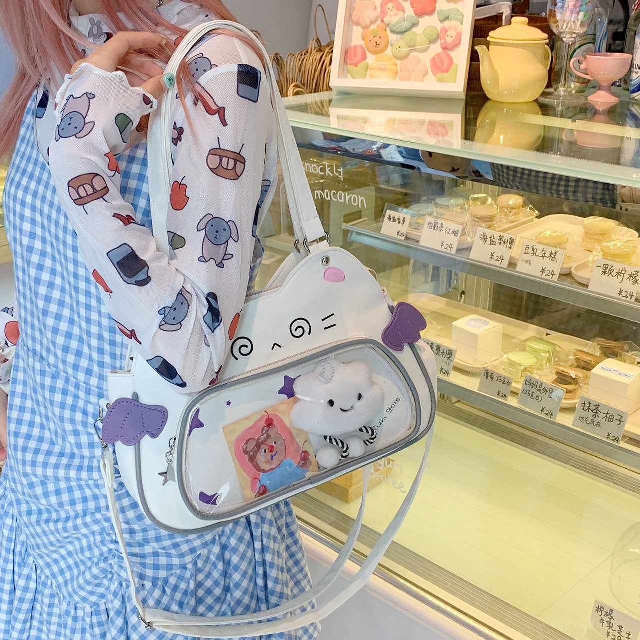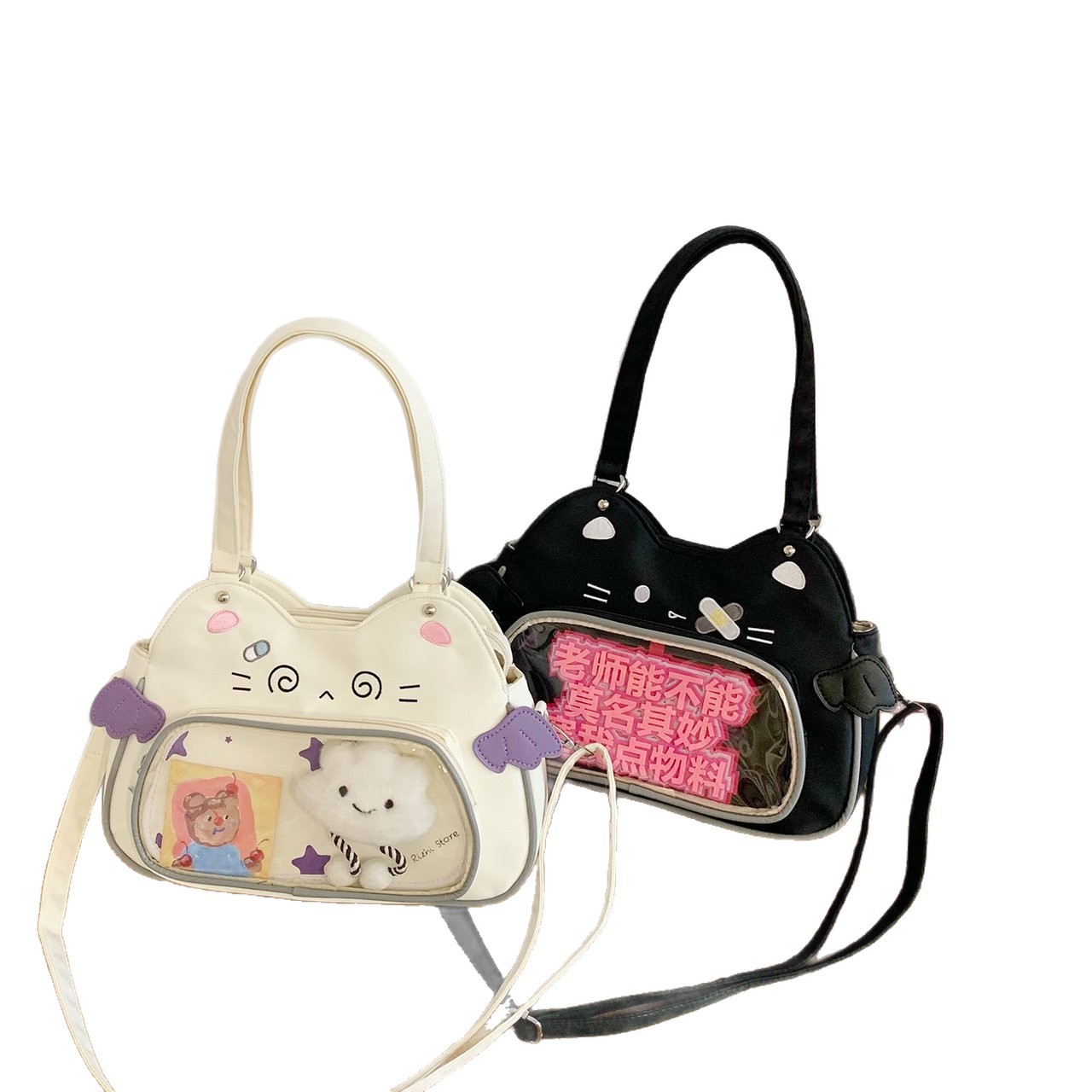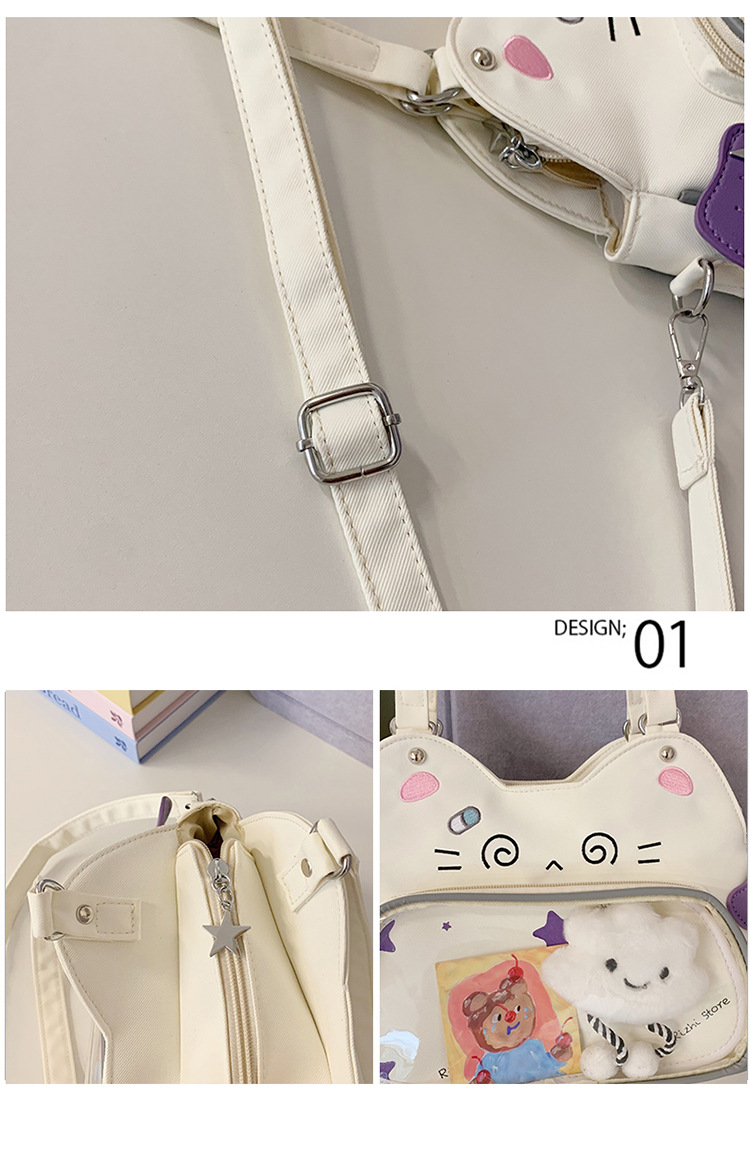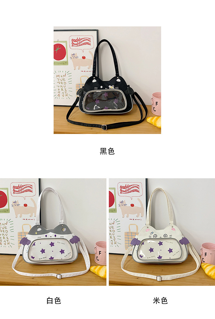 日系可爱女生恶魔小猫轻便小食量透明谷子痛包逛街通勤单肩斜跨包 English | 投诉