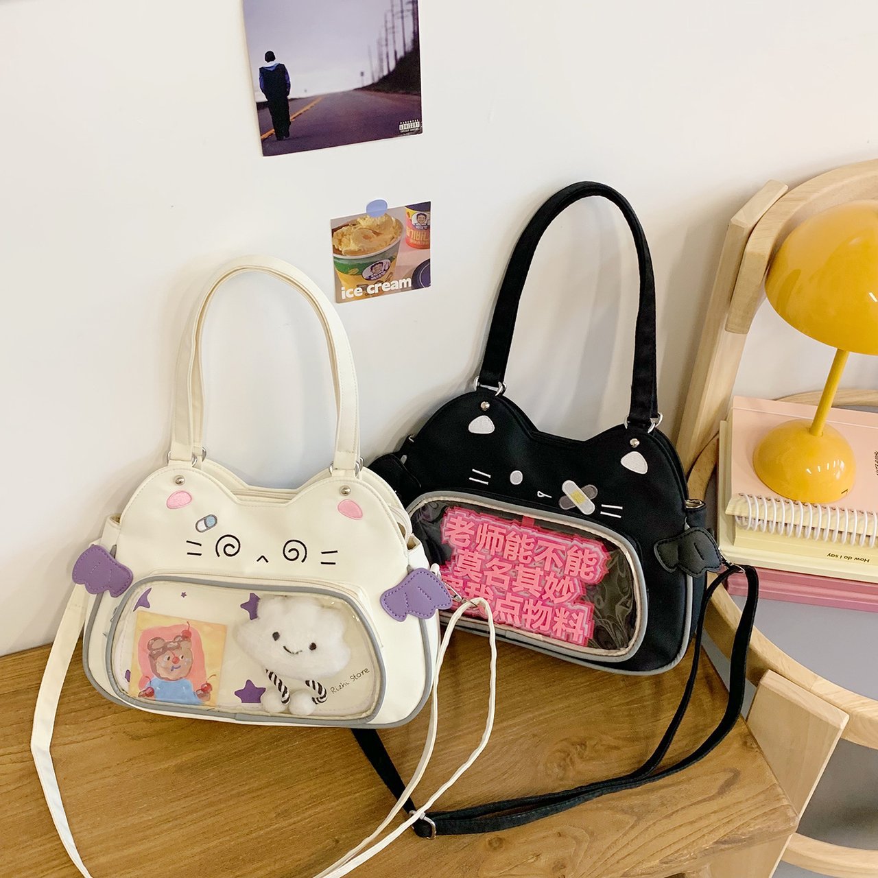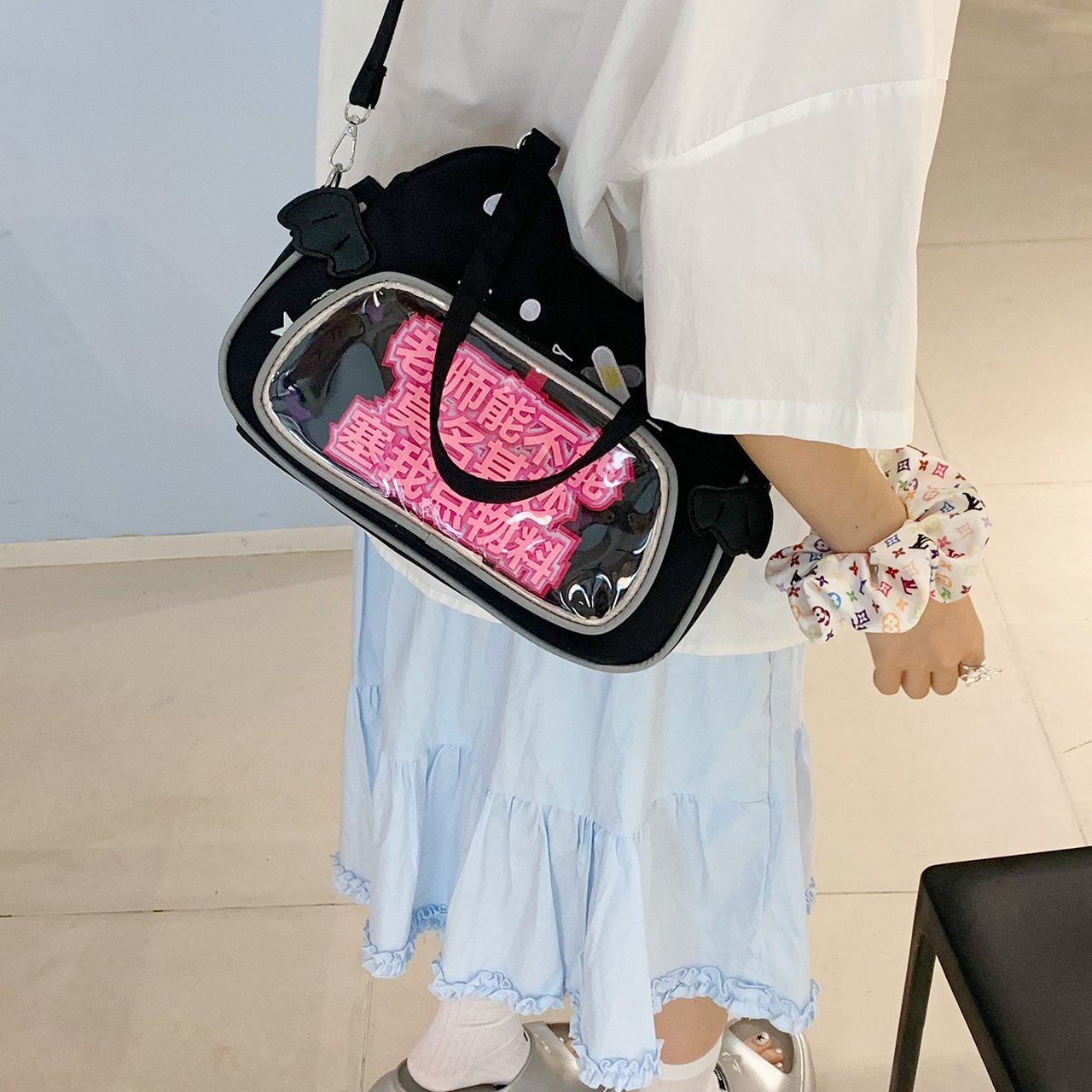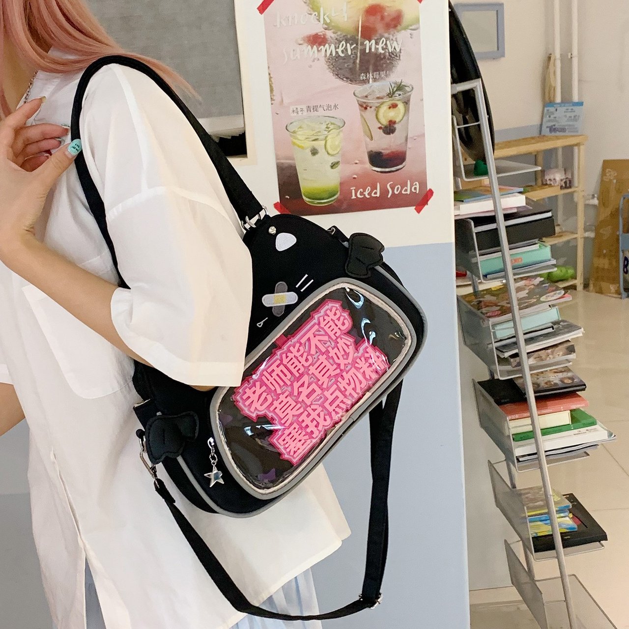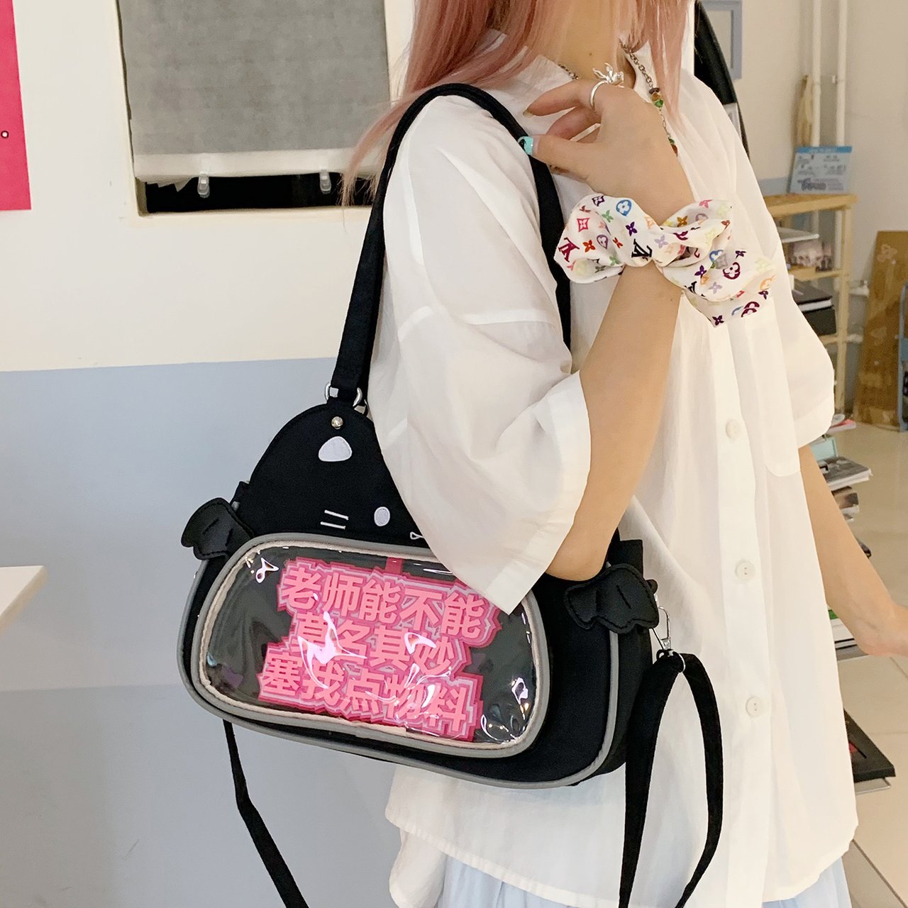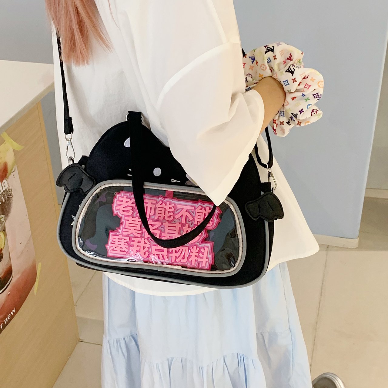 日系可爱女生恶魔小猫轻便小食量透明谷子痛包逛街通勤单肩斜跨包