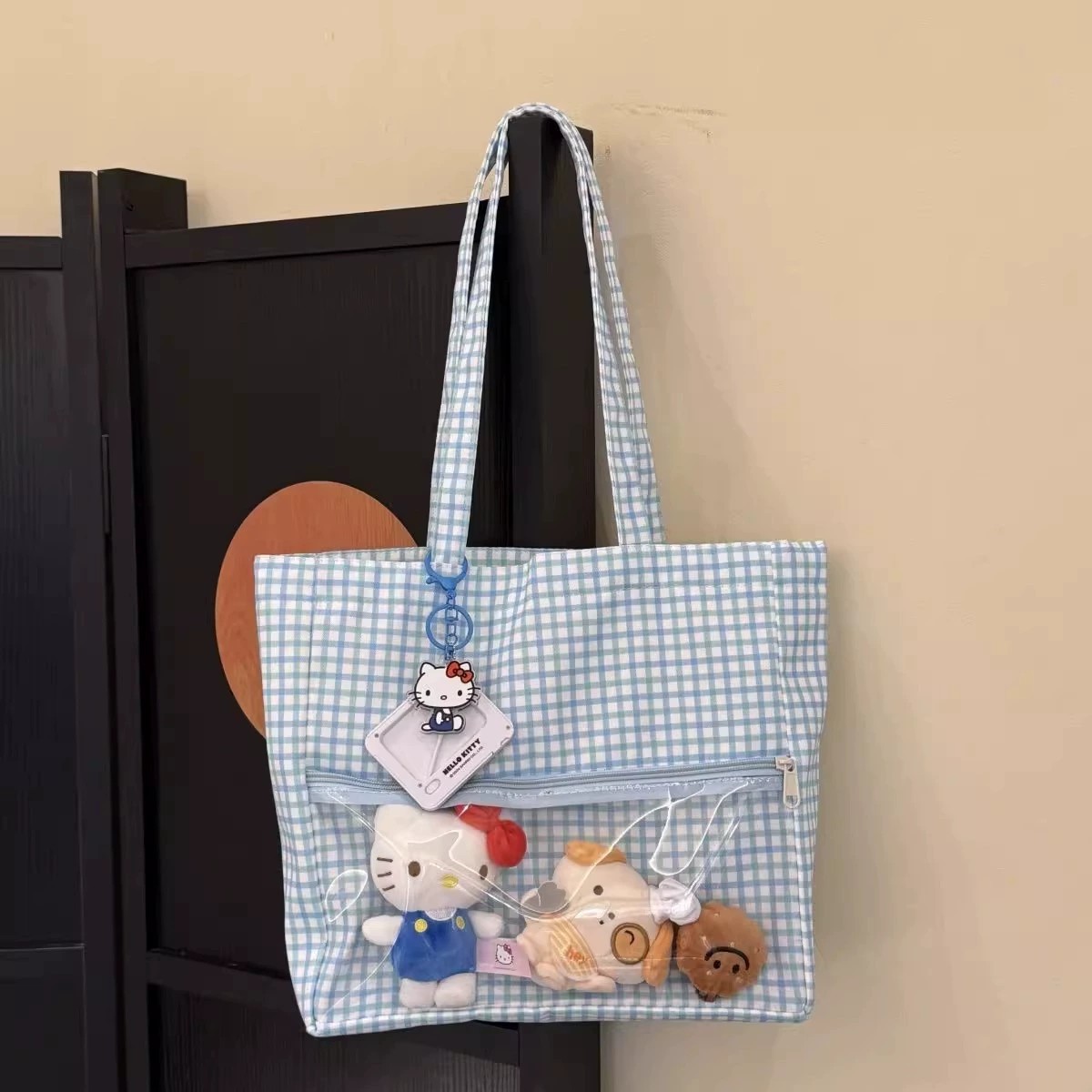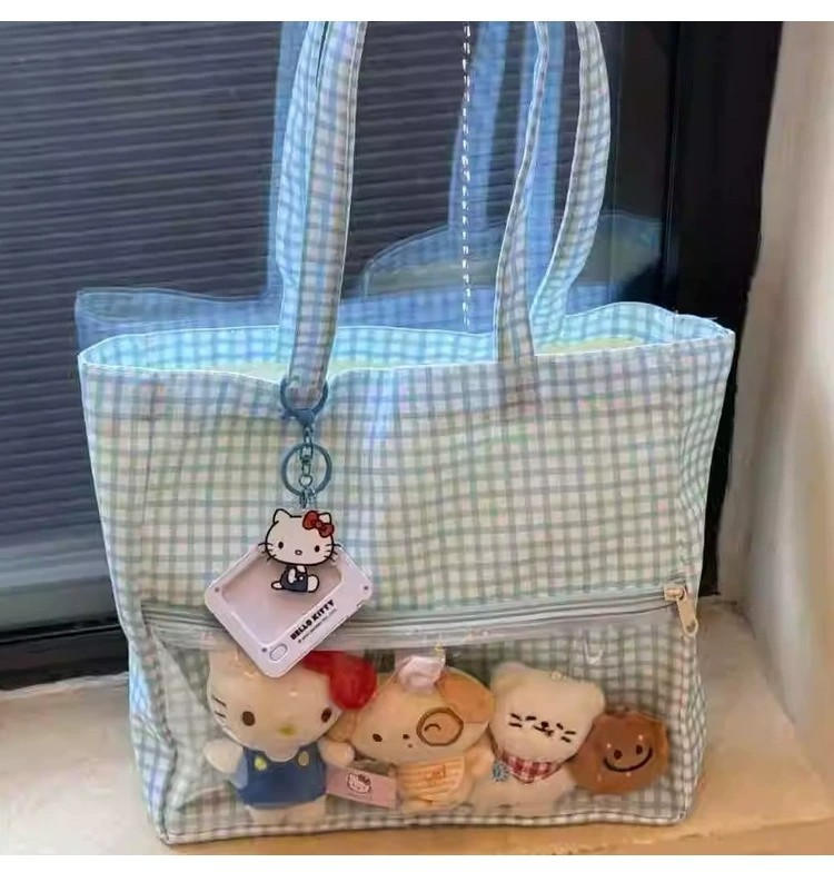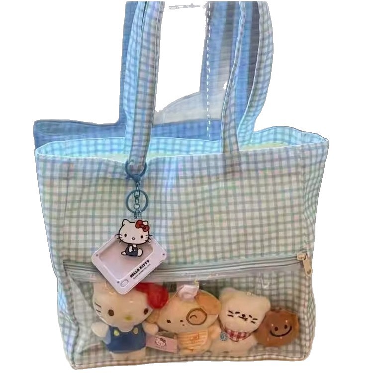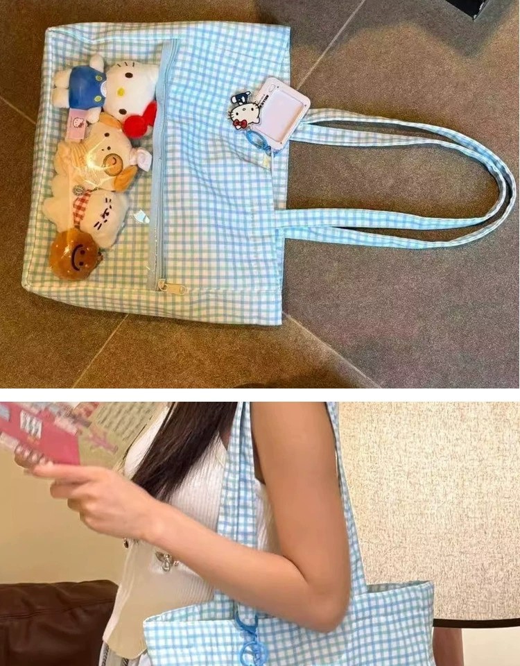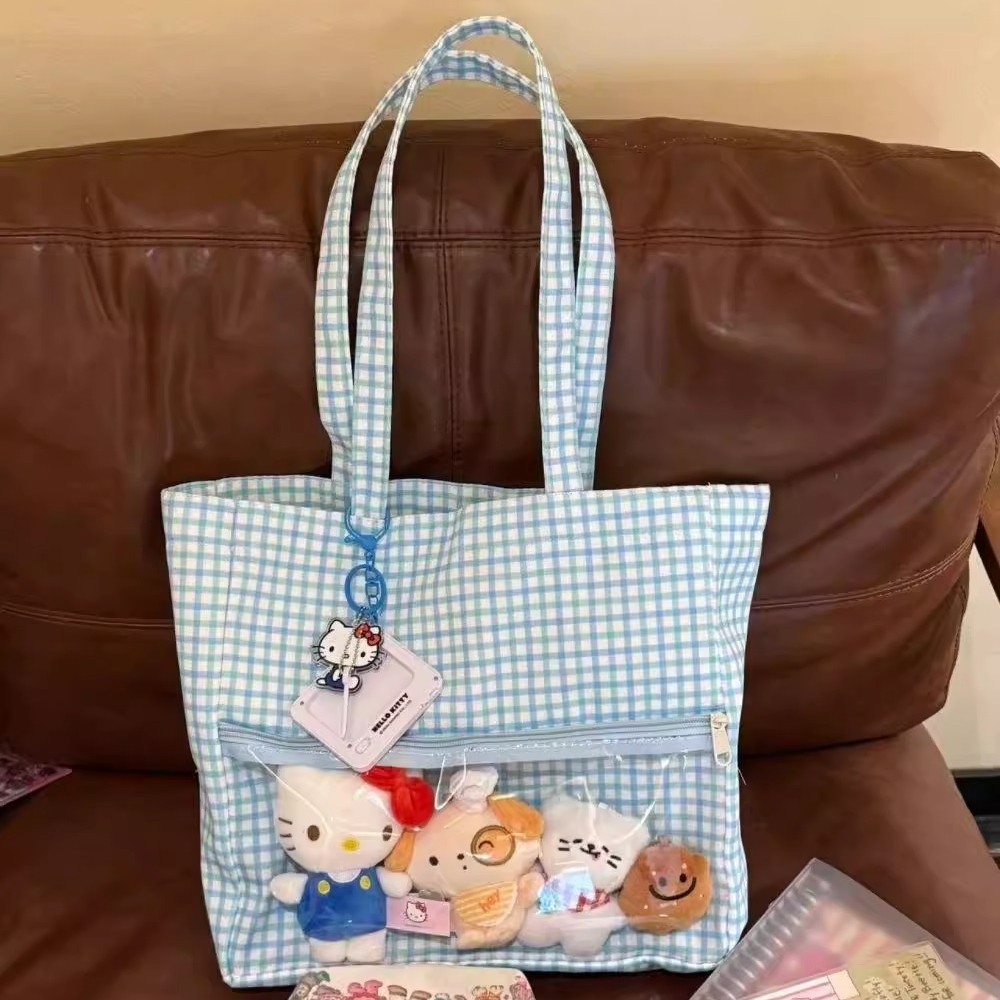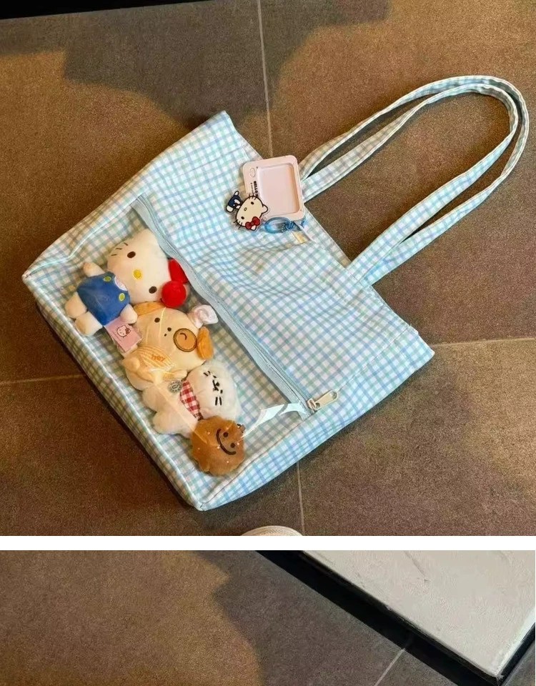 日系二次元吧唧痛包娃包2025新款蓝色波点单肩包可爱大容量托包 English | 投诉
