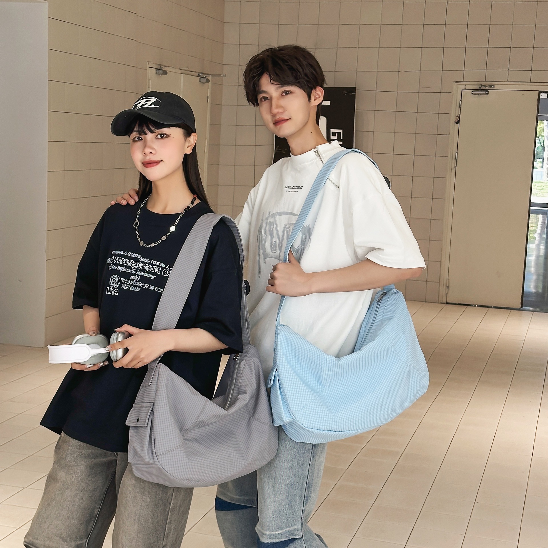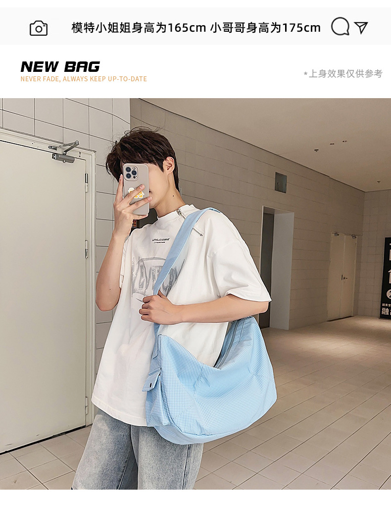 夏季2025新款格纹流浪包个性时尚百搭大肩带单肩包大容量斜跨包 English | 投诉