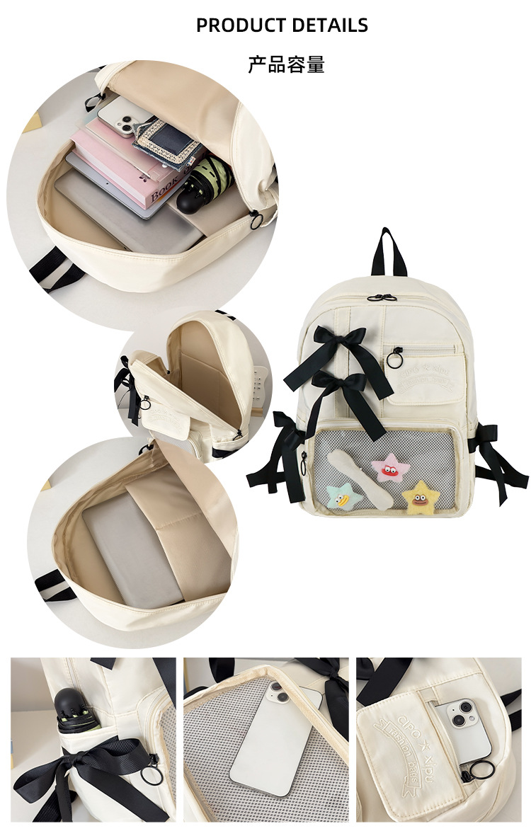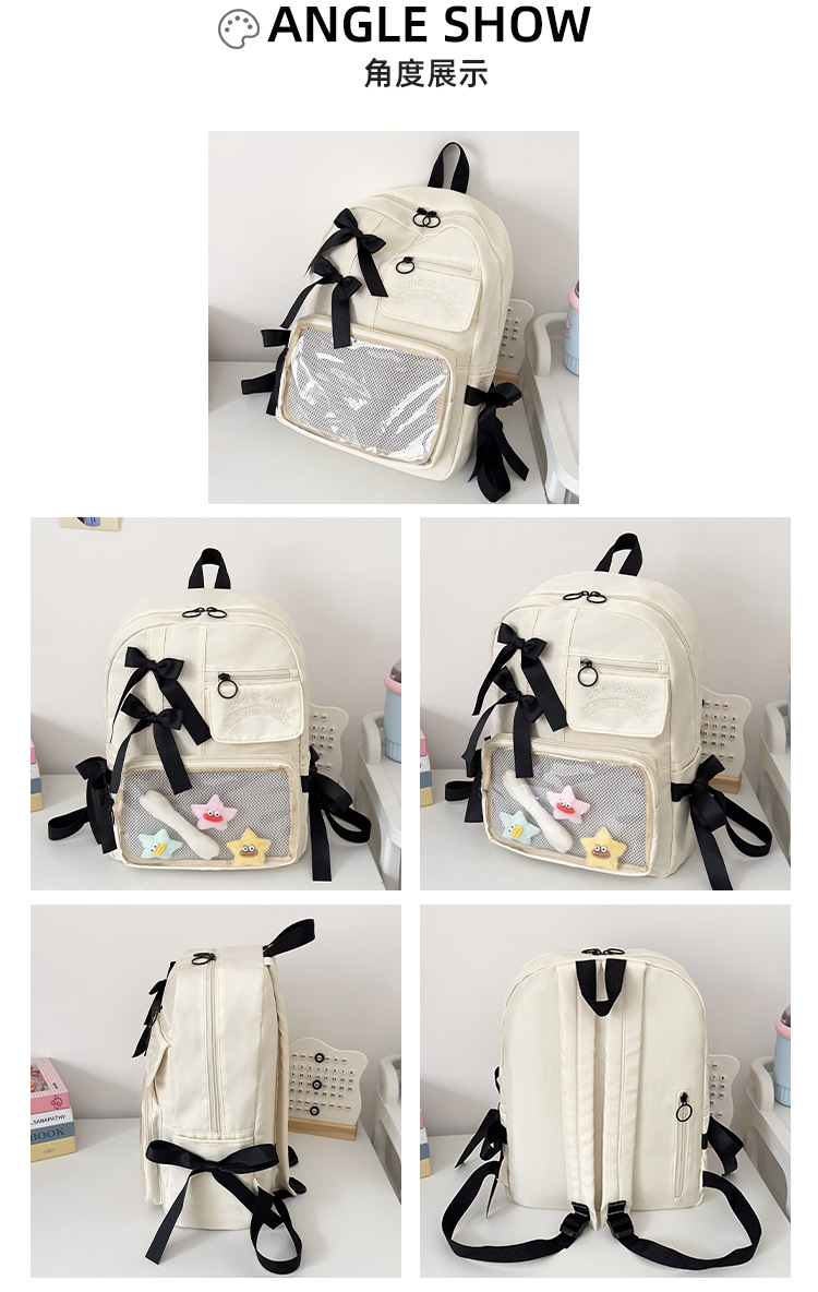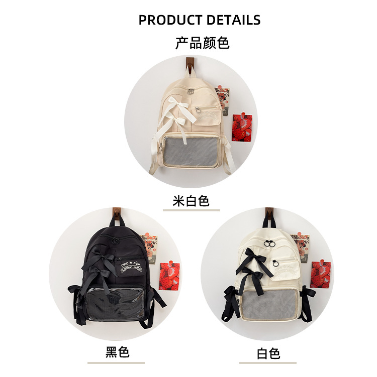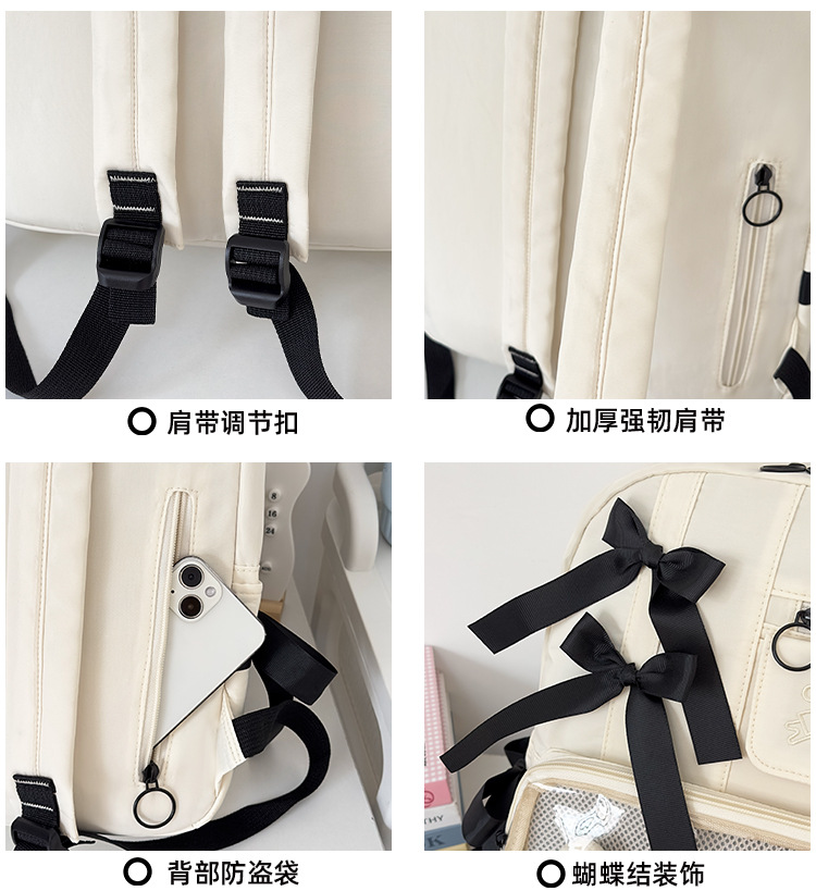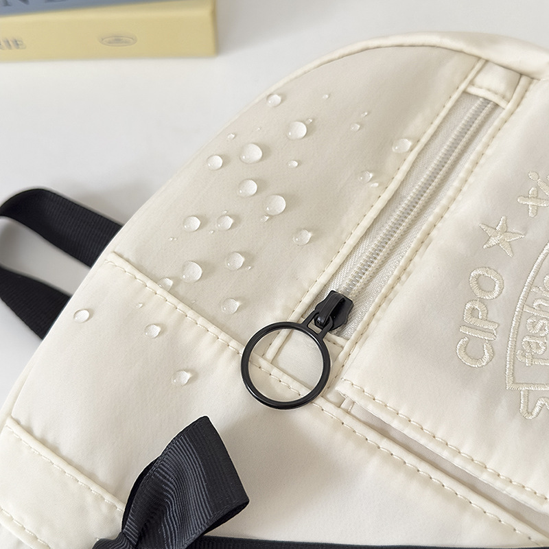货号: 000 品牌: 000 适用性别: 女 材质: 尼龙 功能: 透气,防水,抗菌 风格: 清新甜美 里料质地: 聚酯纤维 图案: 字母 流行元素: 车缝线,痛包丝带 形象: 丝带 有可授权的自有品牌: 否 上市年份季节: 2025夏季 适用场景: 学校教育 背负系统: 神经桥技术 适用学龄: 初中 重量: 0.001 kg/个