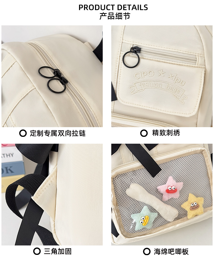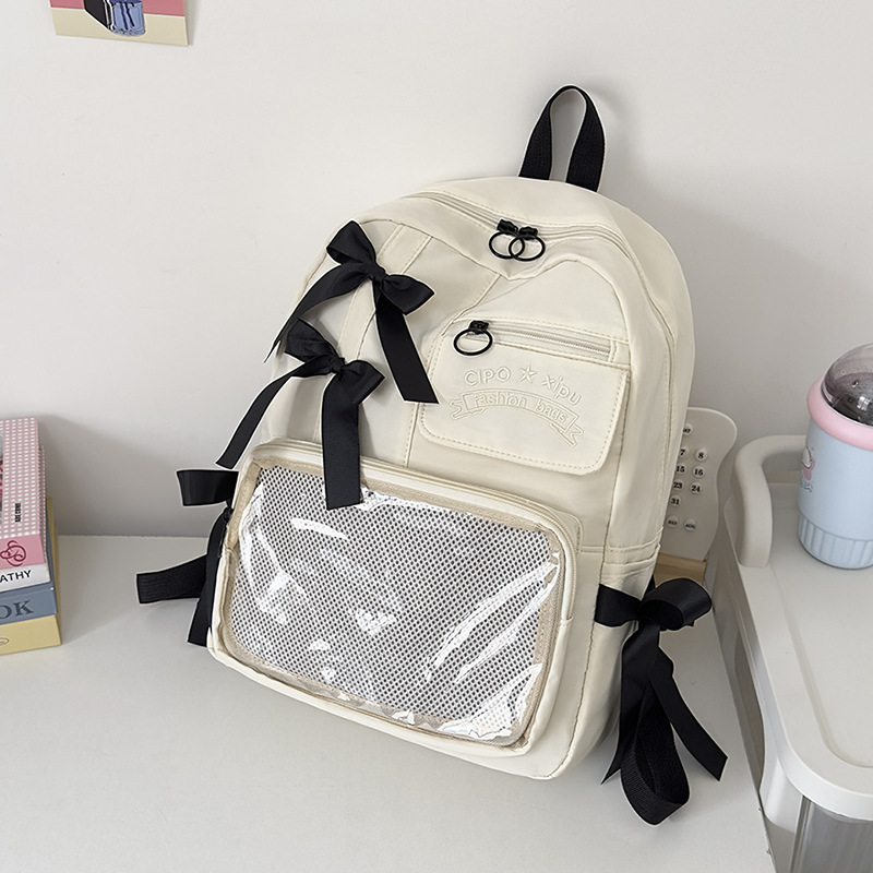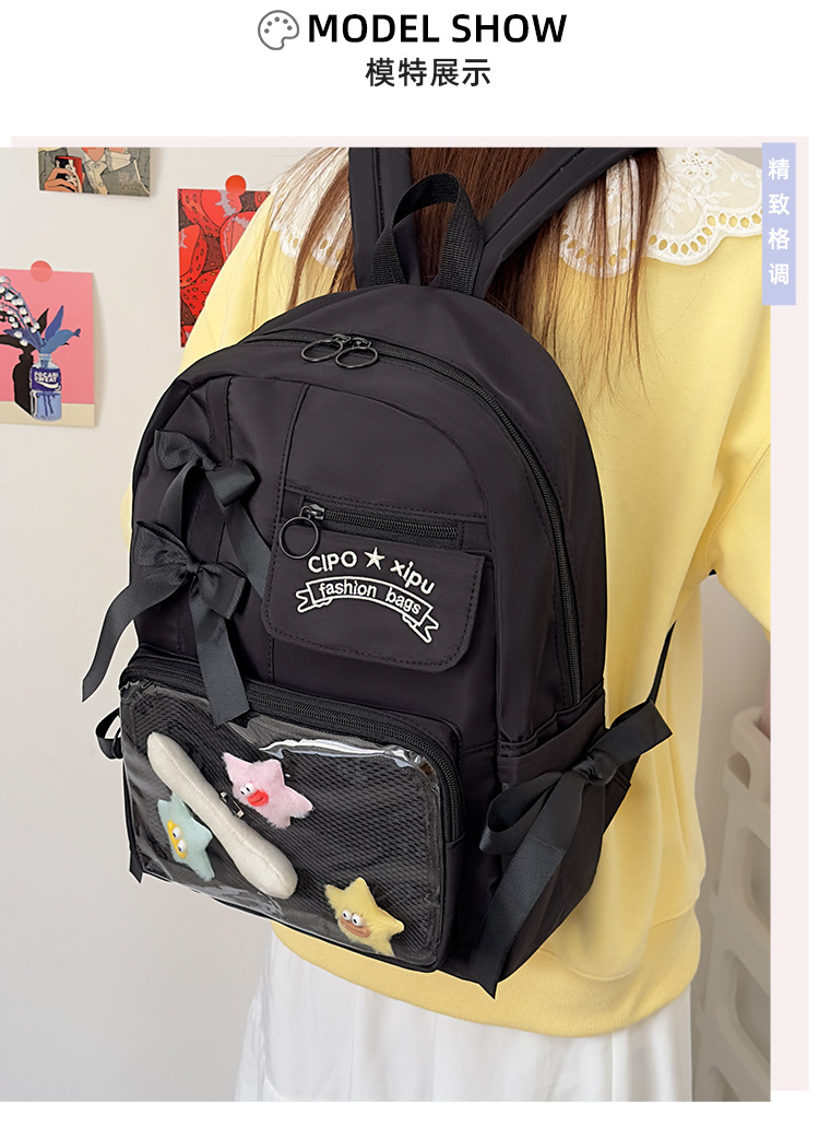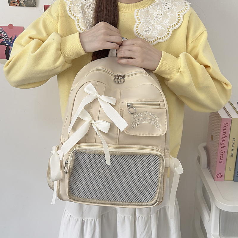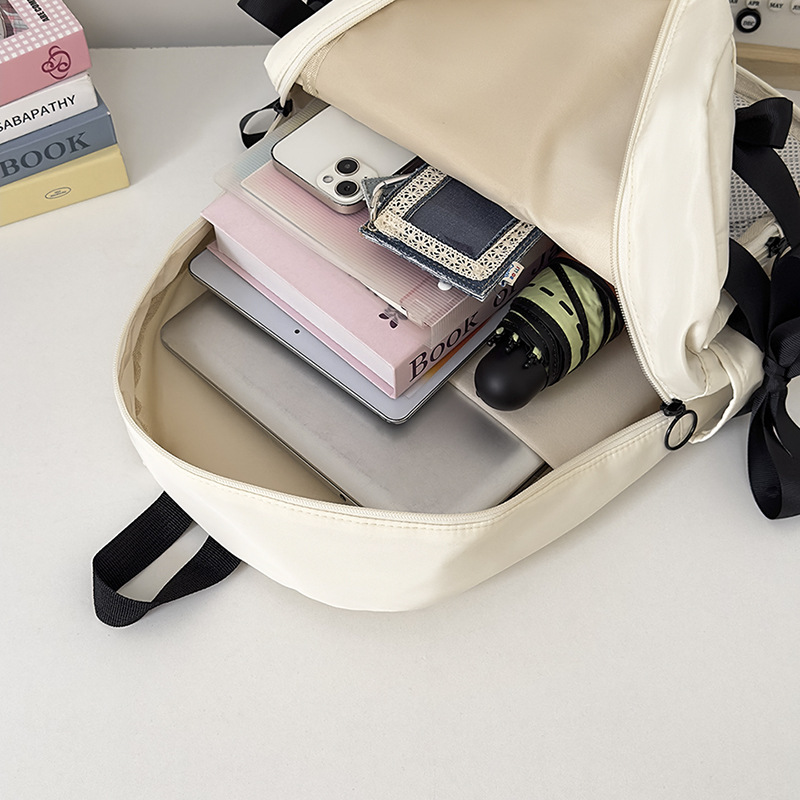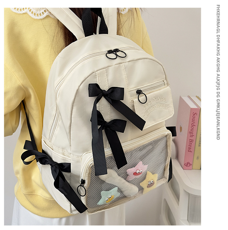货号: 000 品牌: 000 适用性别: 女 材质: 尼龙 功能: 透气,防水,抗菌 风格: 清新甜美 里料质地: 聚酯纤维 图案: 字母 流行元素: 车缝线,痛包丝带 形象: 丝带 有可授权的自有品牌: 否 上市年份季节: 2025夏季 适用场景: 学校教育 背负系统: 神经桥技术 适用学龄: 初中 重量: 0.001 kg/个