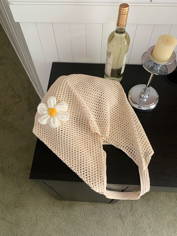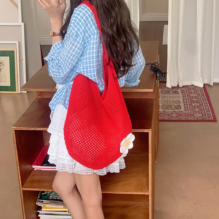 夏季新款大容量编织包海边度假花朵针织沙滩包时尚单肩通勤托特包