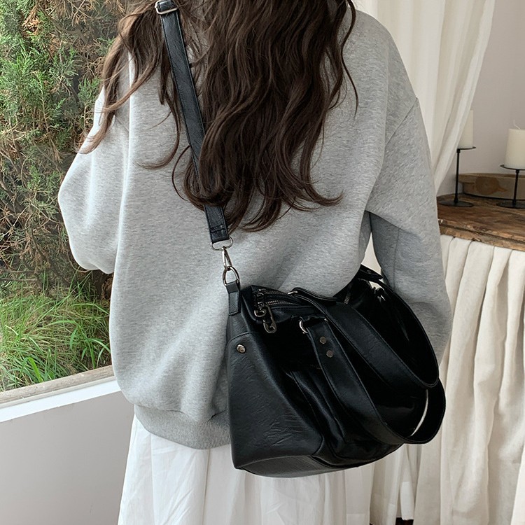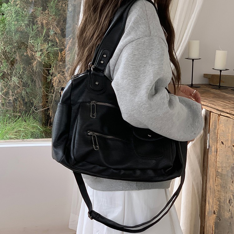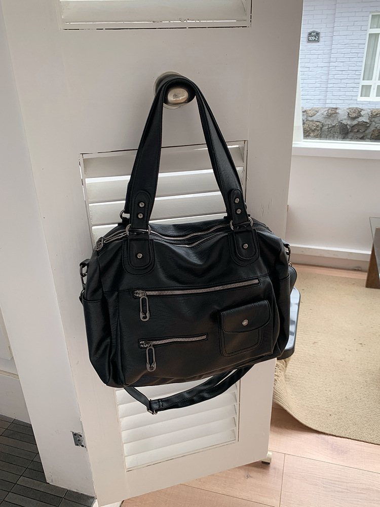 多拉链机车包包复古出差行李包托特包旅行包大容量手提单肩斜挎包 English | 投诉
