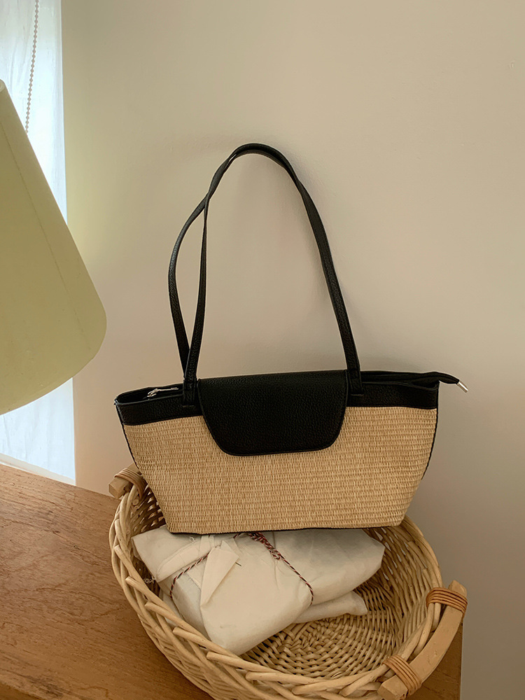 法式小众复古度假沙滩草编包编织包春季女士包休闲单肩腋下托特包