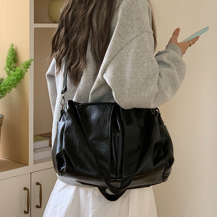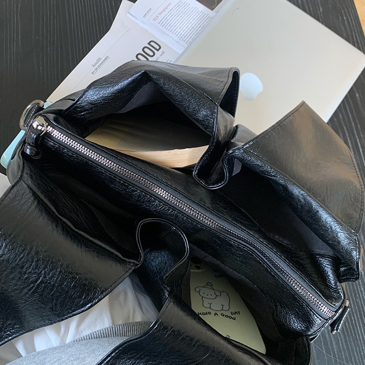 颜色: 黑色 风格: 街头潮流 货号: D8971 材质: PU 箱包潮流款式: 托特包 箱包大小: 大 流行元素: 车缝线 上市年份季节: 2025年春季 开盖方式: 拉链 包内部结构: 拉链暗袋 硬度: 软 品牌: 初艾 肩带根数: 单根 适用场景: 日常搭配 重量: 0.001 kg/个