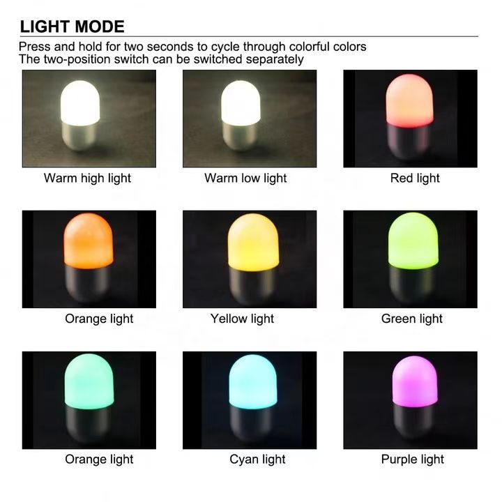 档位:暖光开关-高亮-低亮-关,RGB开关-顺序七彩,关,长按两秒,循环变色七彩,两档开关可各自切换