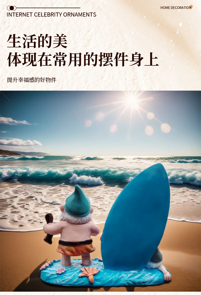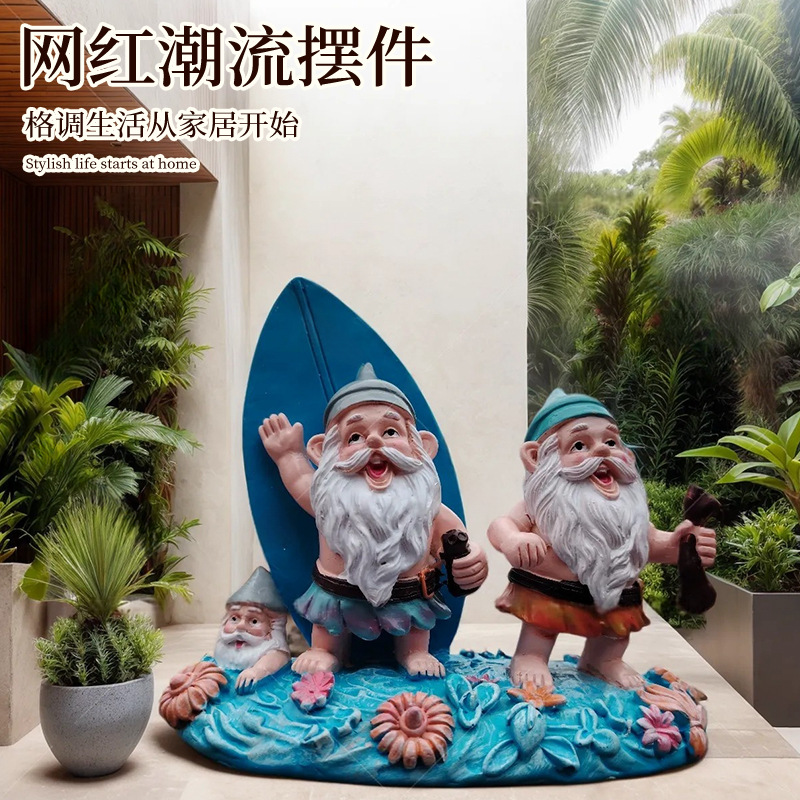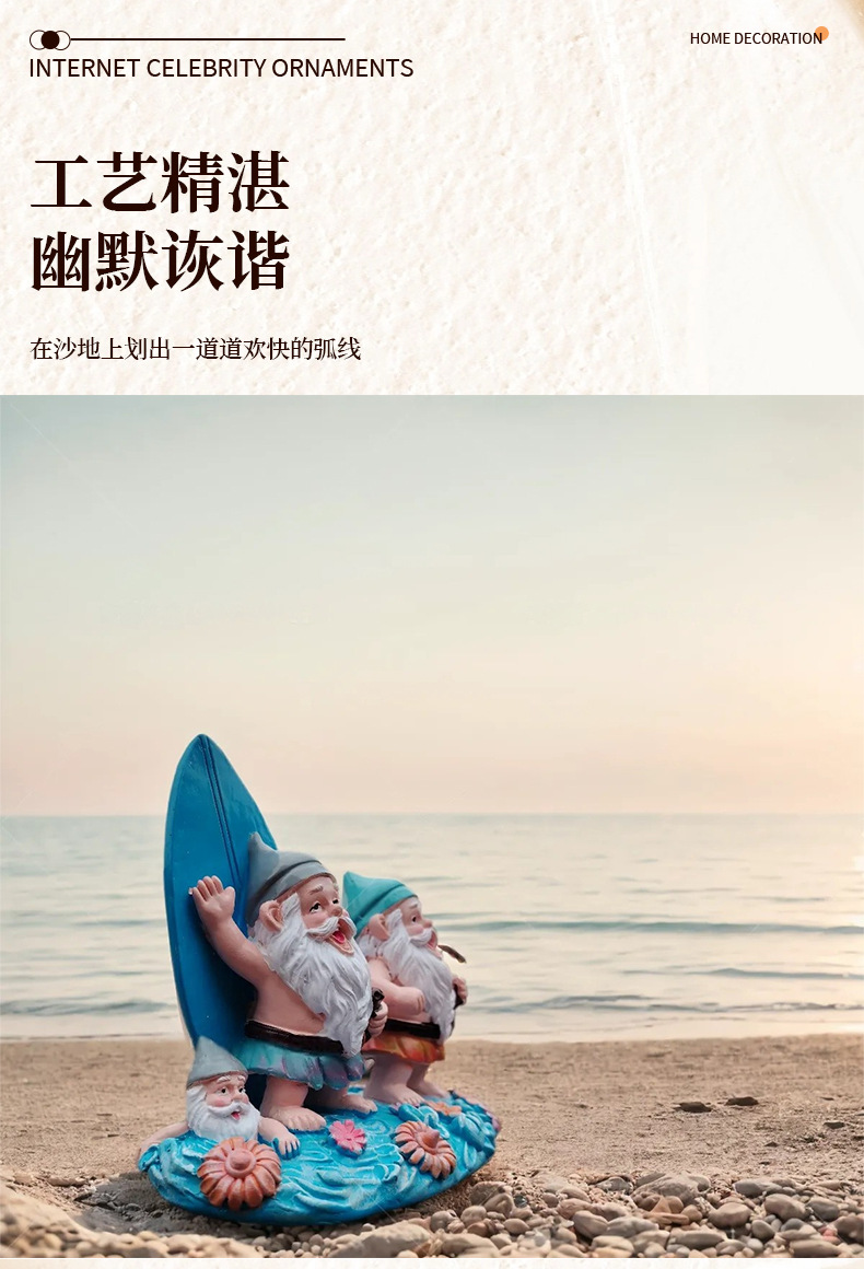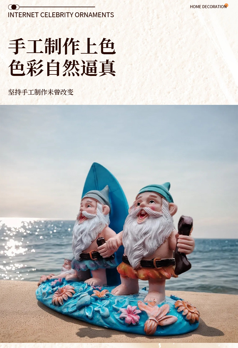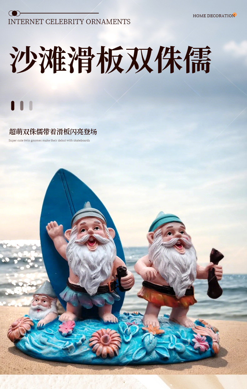 外贸玩具3D立体树脂沙滩滑板双侏儒装饰品摆件男女生朋友生日礼物