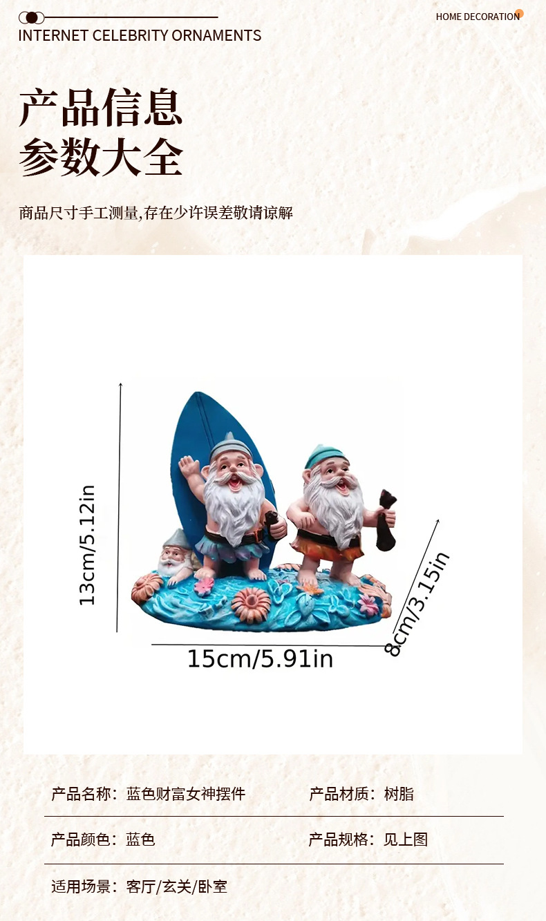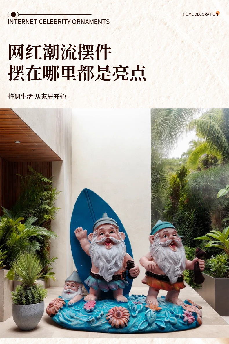 外贸玩具3D立体树脂沙滩滑板双侏儒装饰品摆件男女生朋友生日礼物 投诉