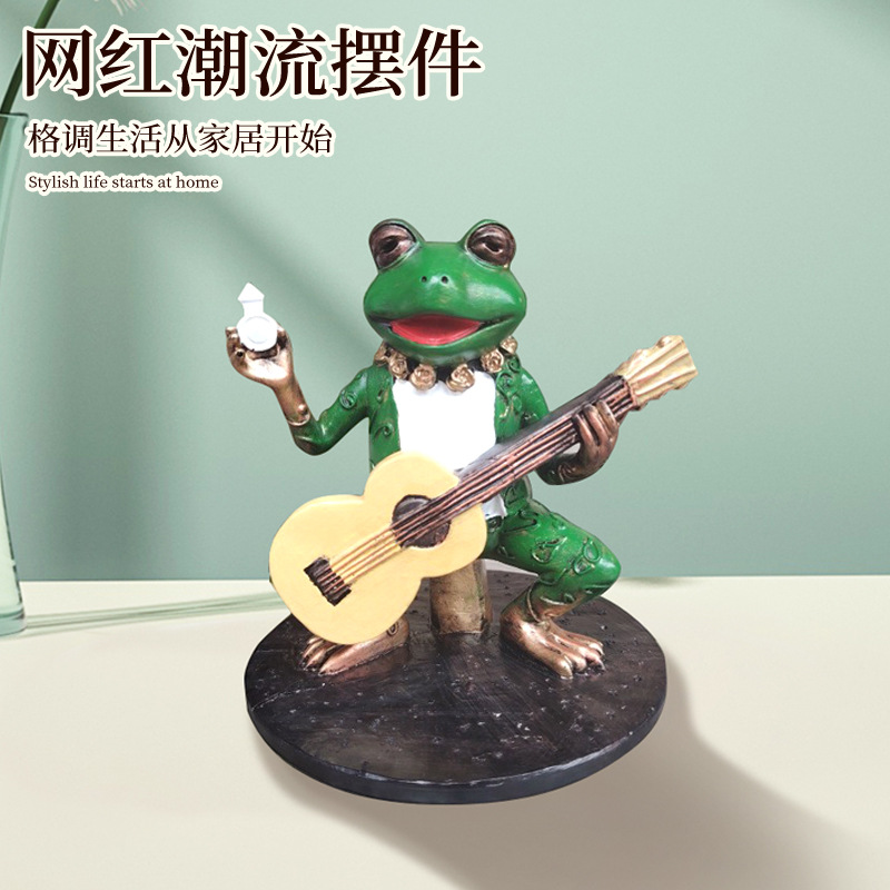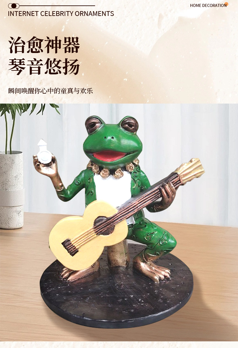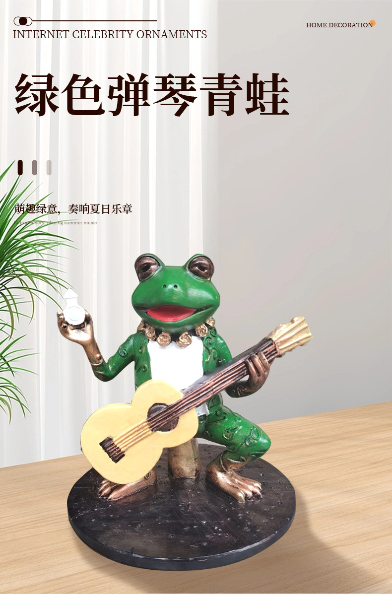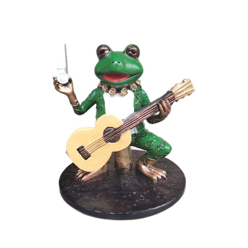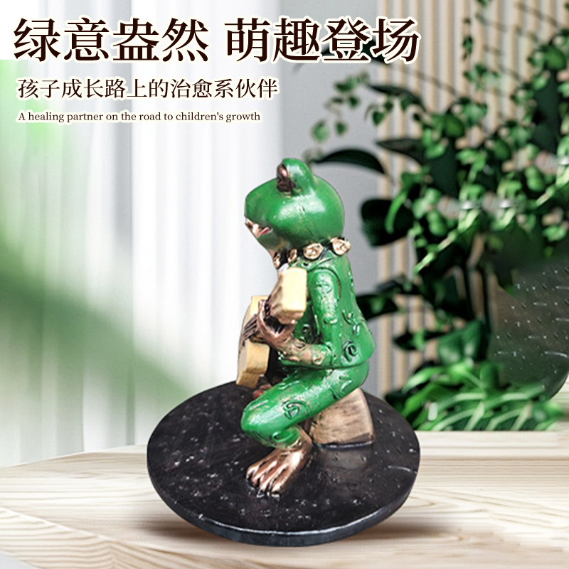 跨境新品绿色弹琴青蛙手办摆件庭院花园面二次元景观装饰摆件