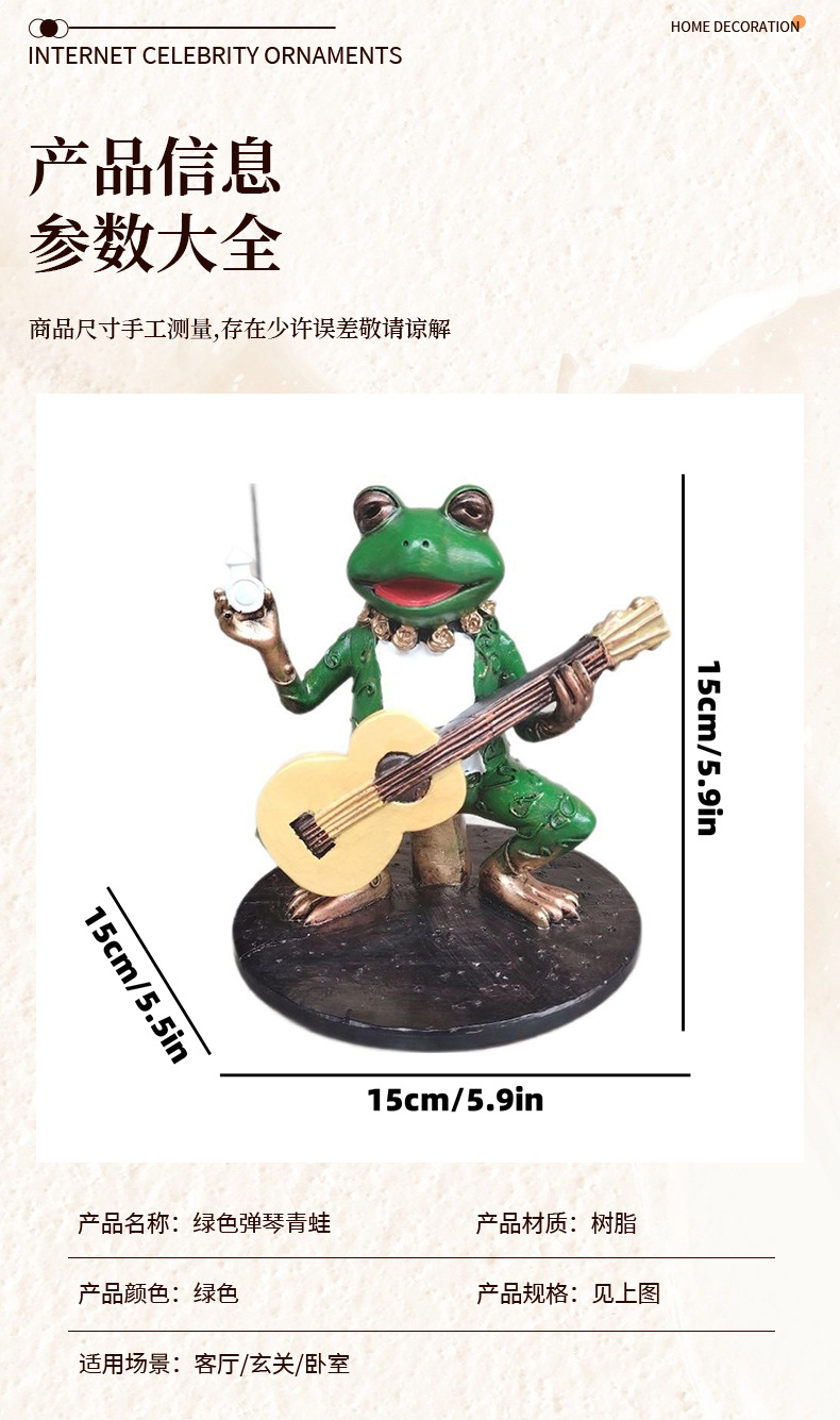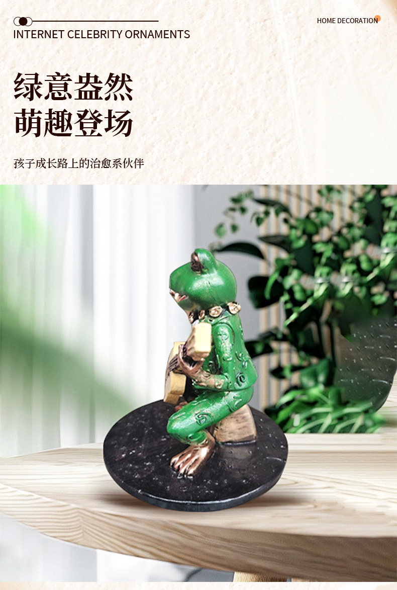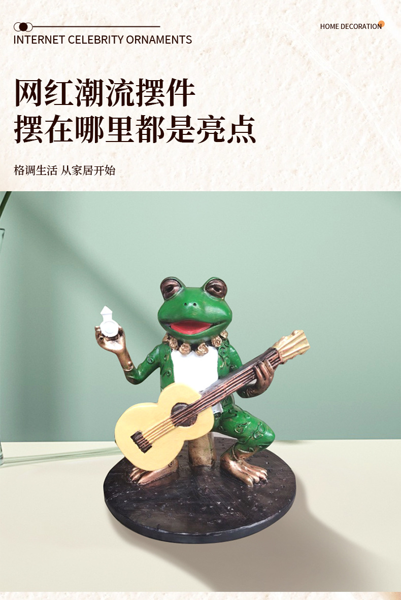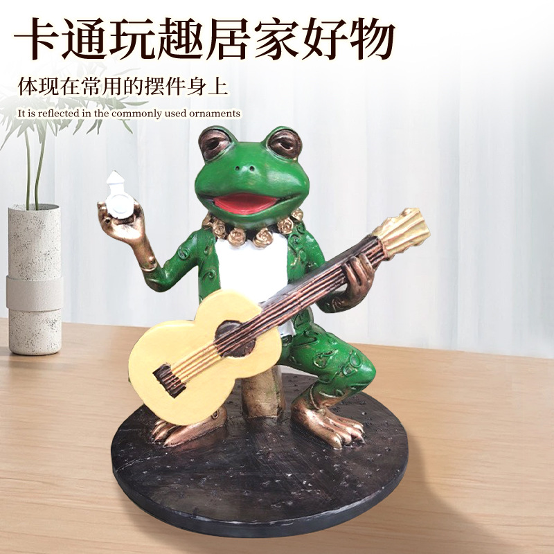 跨境新品绿色弹琴青蛙手办摆件庭院花园面二次元景观装饰摆件