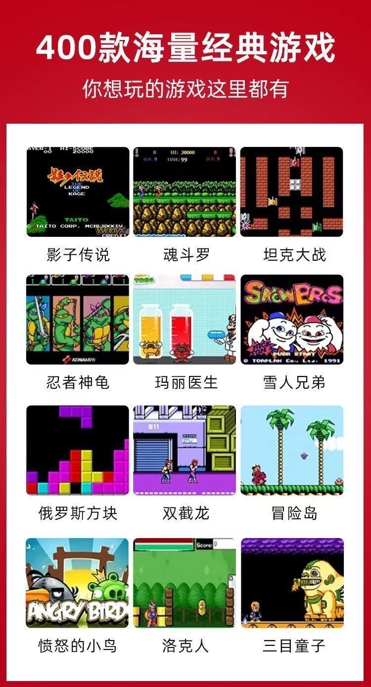型号: 400合一红色,400合一黑色,400合 货号: SUP掌机 产地: 中国大陆 货源类别: 现货 商品类型: 全新 产品类别: sup复古游戏机 游戏类型: ACT动作游戏 游戏版本: 简装版 接口类型: USB 视频/音频接口: AV线