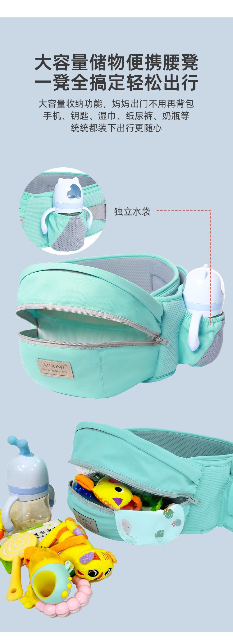 厂家批发爱诺咪婴儿背带外贸出口四季多功能抱式简易腰凳一件代发 English | 投诉