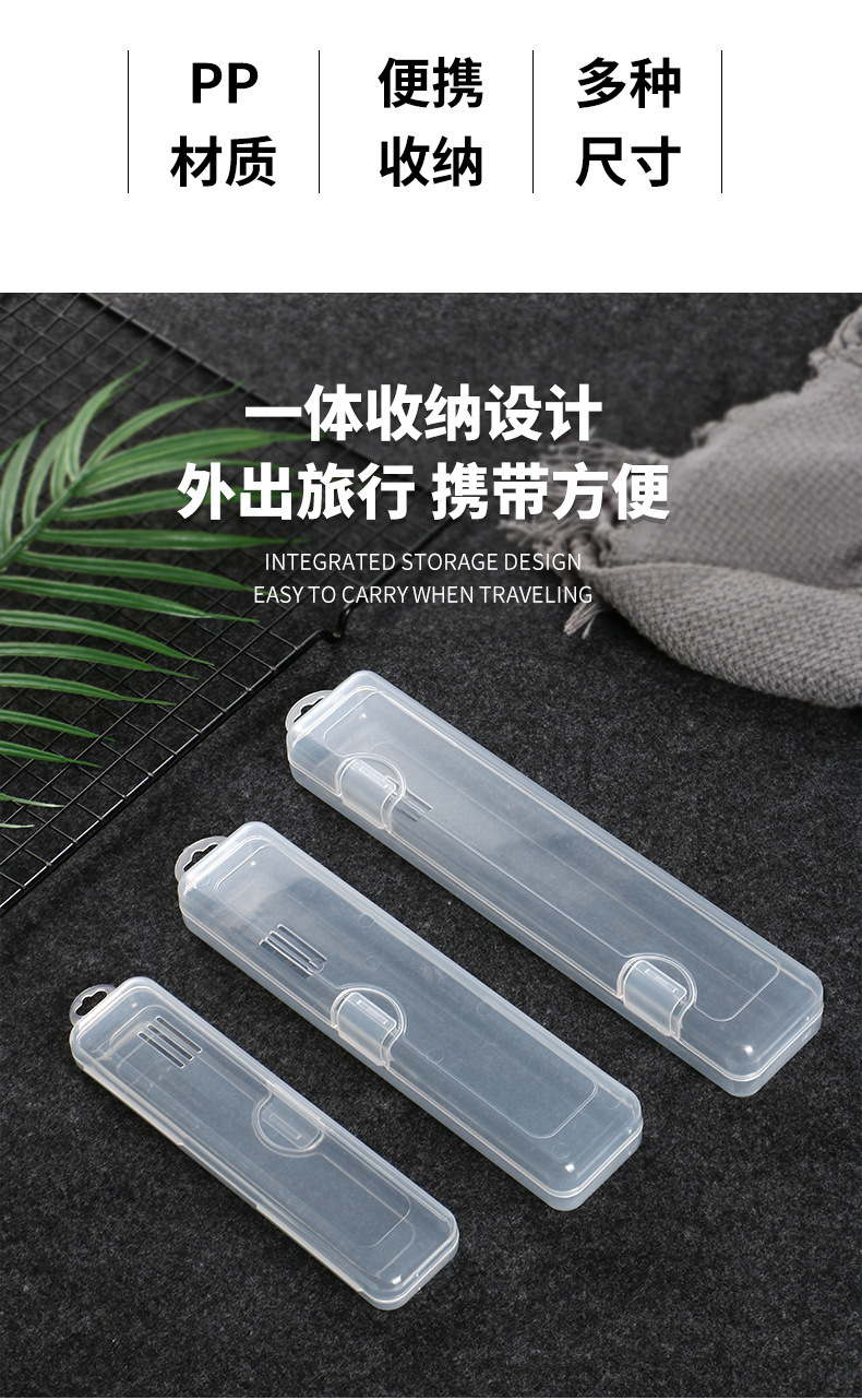 便携透明防尘塑料餐具盒带挂钩网红勺叉筷化妆刷不锈钢吸管收纳盒