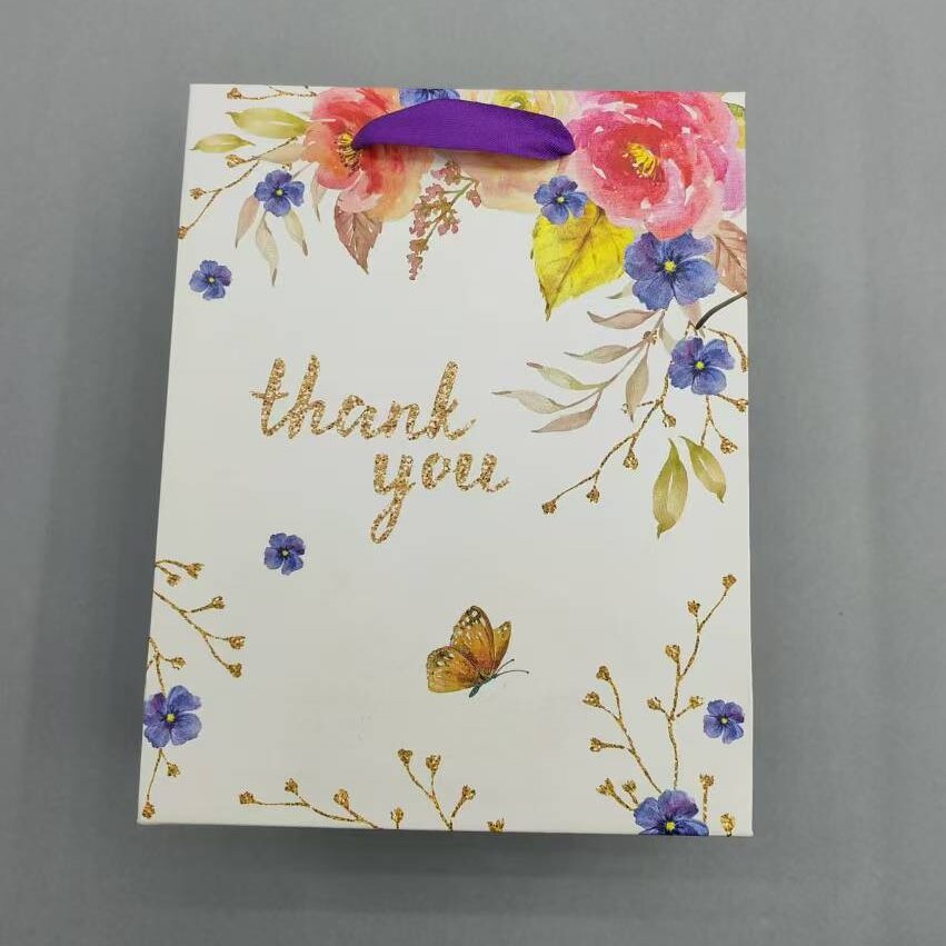 210克白卡纸创意简洁花图案礼品袋纸袋手提袋适用礼品装现货供应