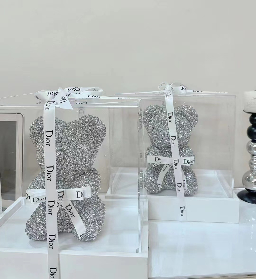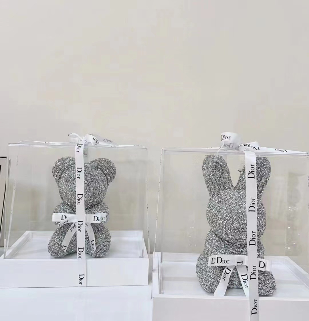 创意永生花钻石熊小兔子七夕节送女友礼物高级感丝带亚克力礼盒