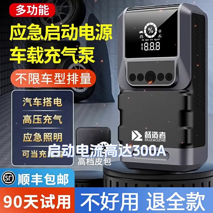 汽车应急启动电源12V车载便携式无线充气泵多功能手机充电照明