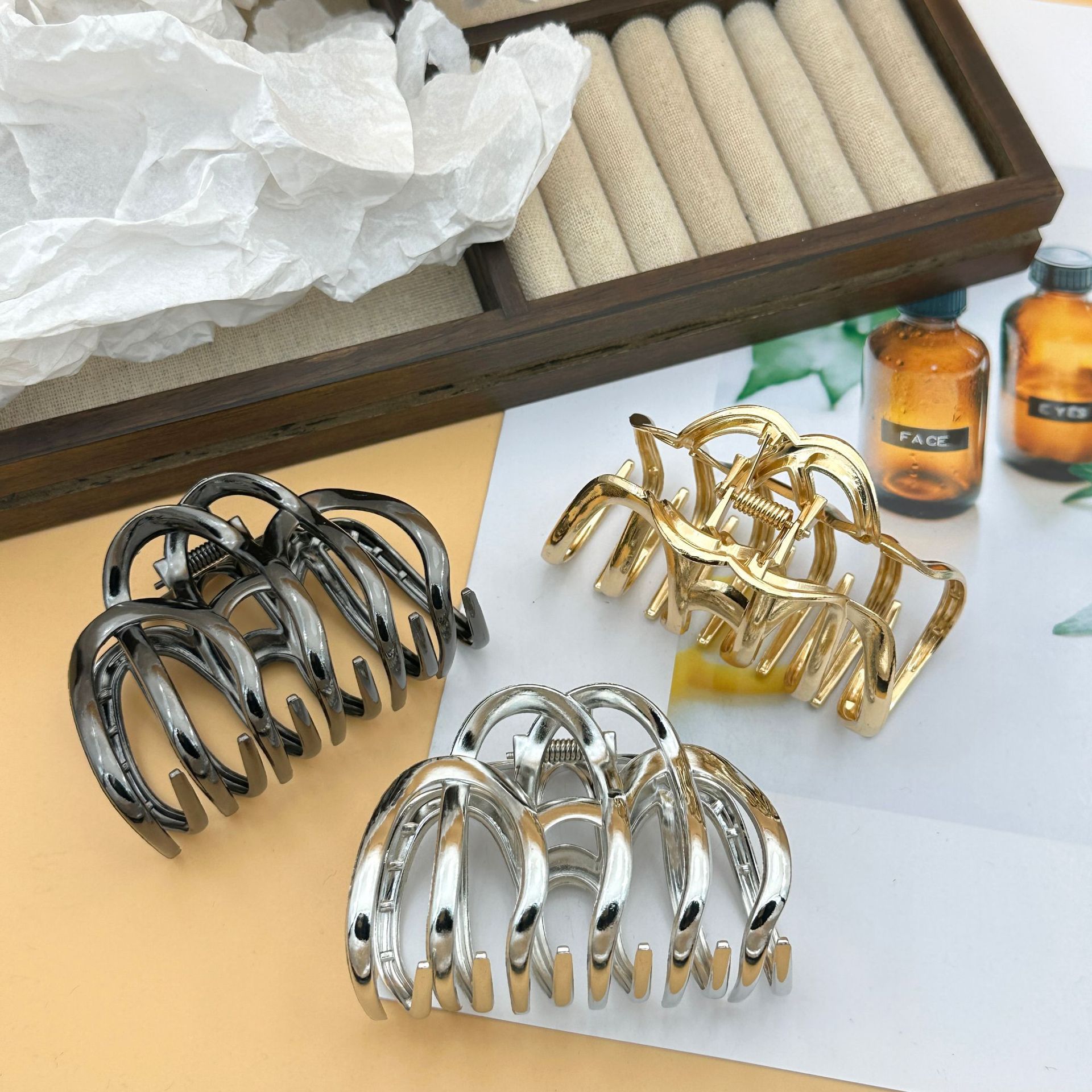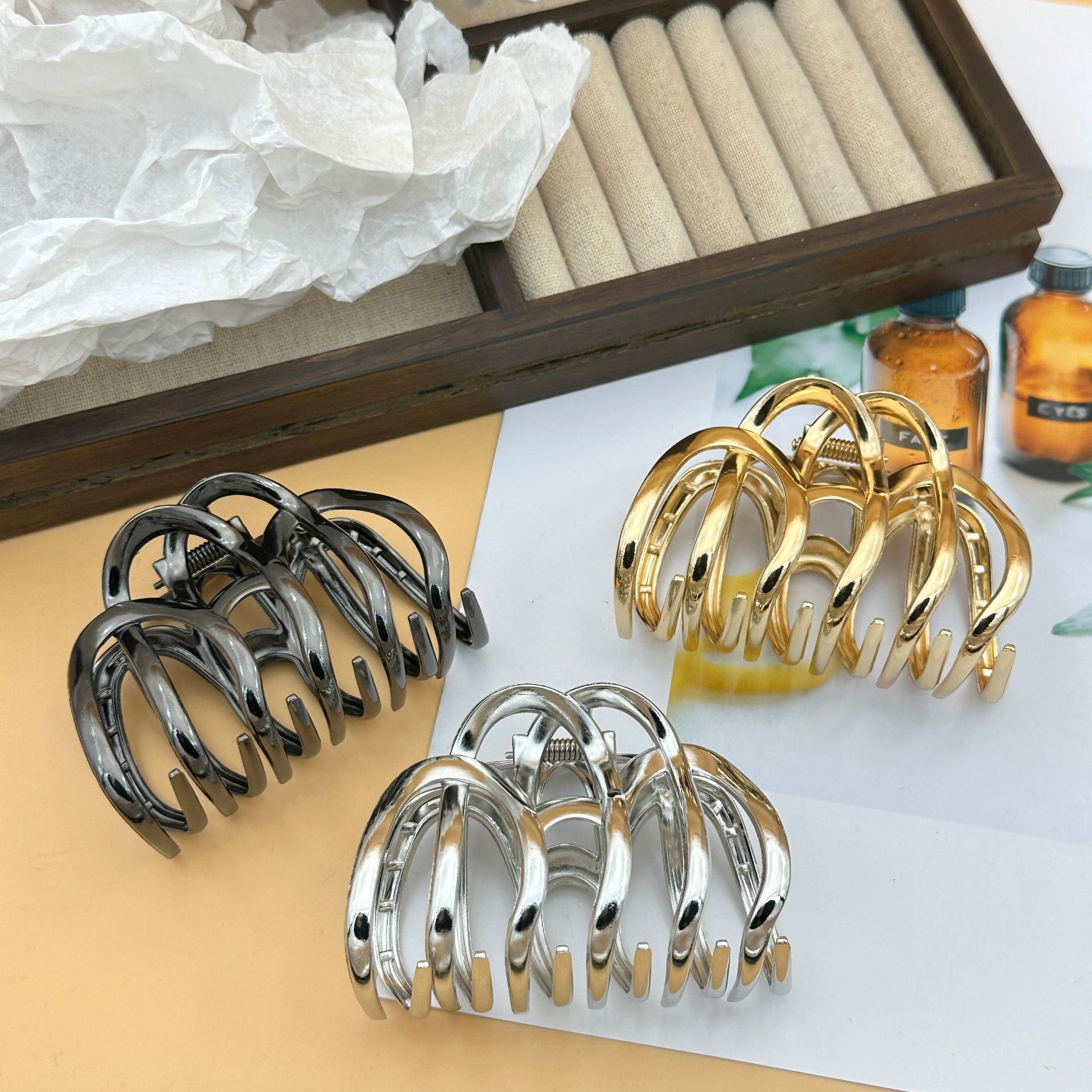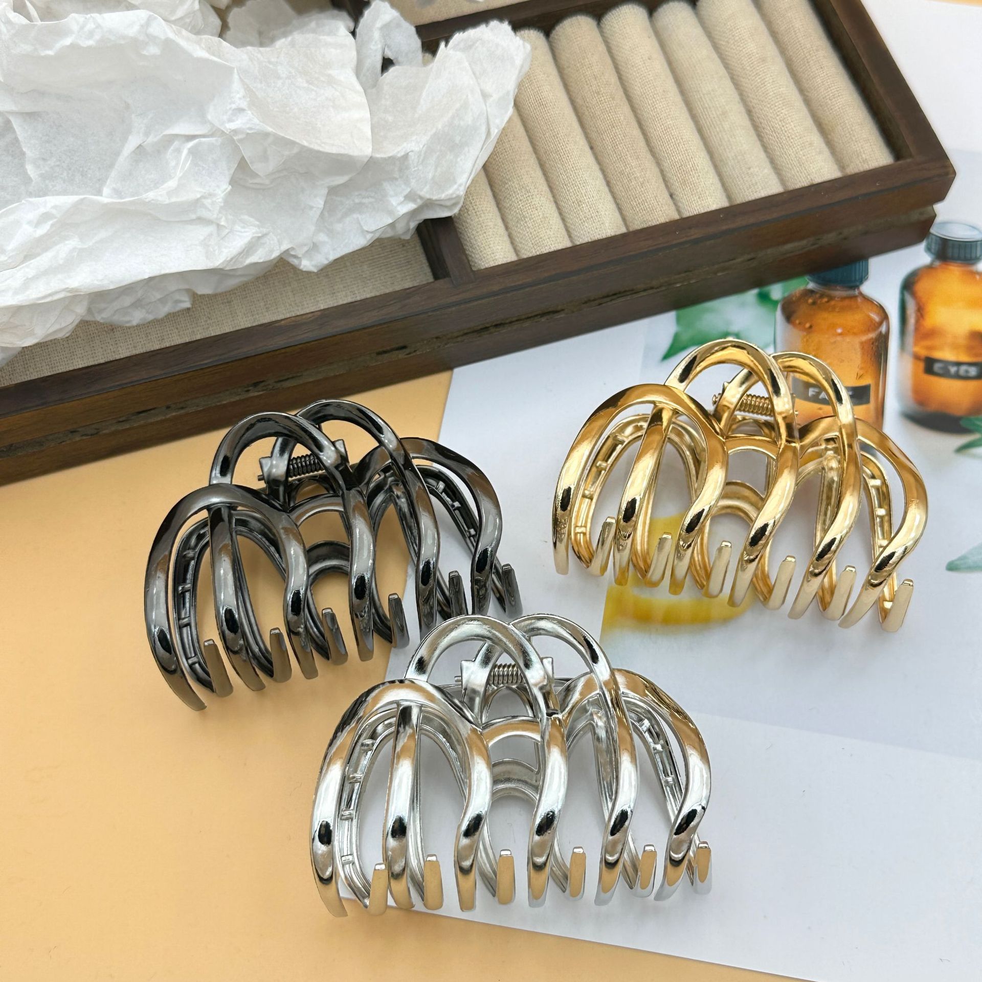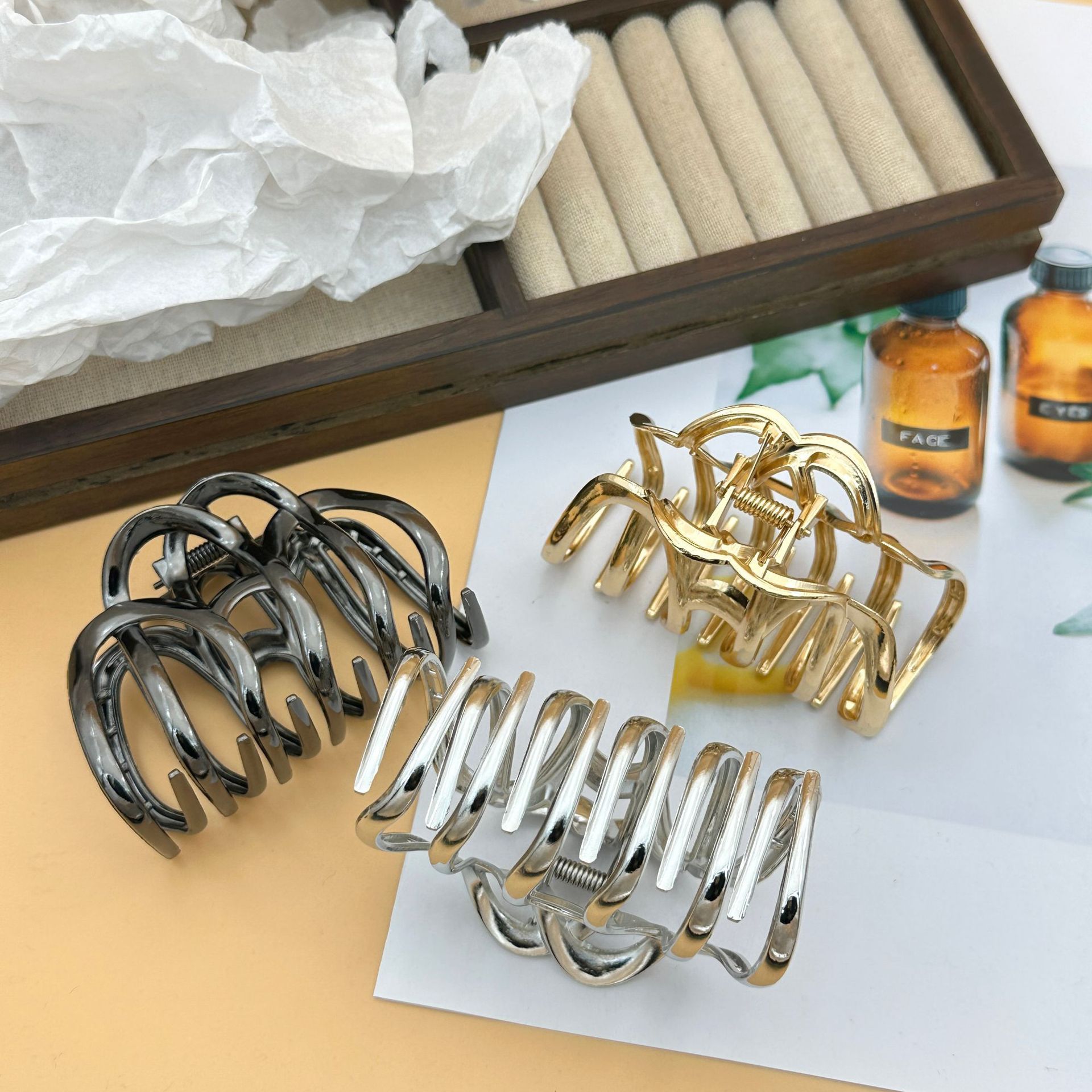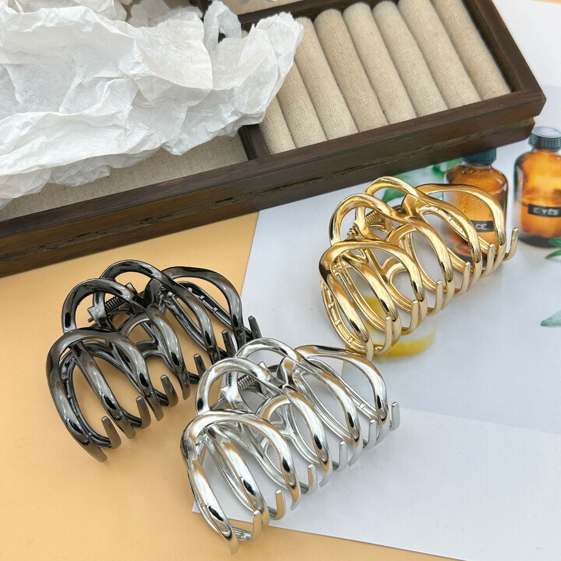 金属几何波浪抓夹南瓜女韩版盘发鲨鱼夹发夹头饰 English | 投诉