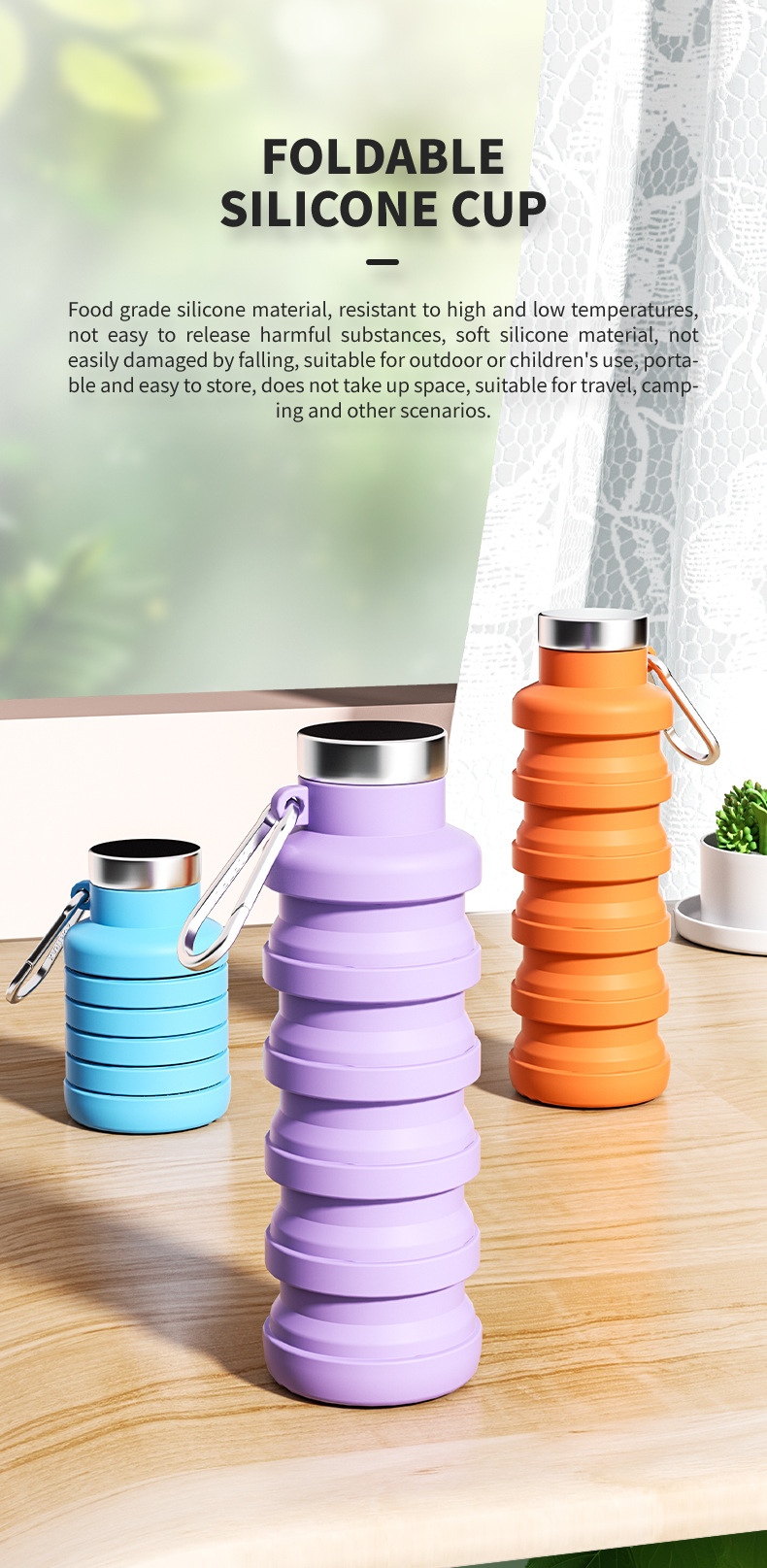 亚马逊创意硅胶折叠水壶跑步健身便携水瓶户外运动水杯旅行杯批发