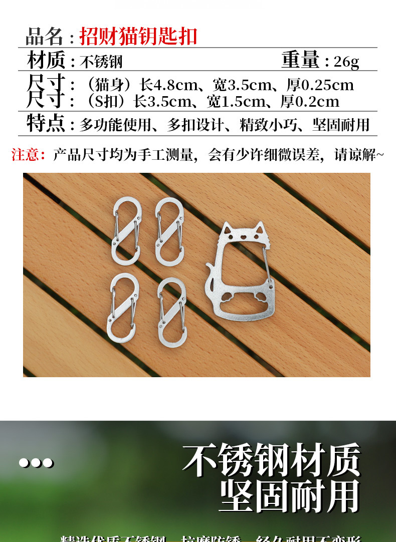 户外招财猫不锈钢钥匙扣便携创意挂钩S钩快挂五金配件超强承重挂 投诉