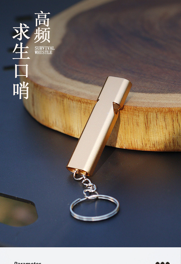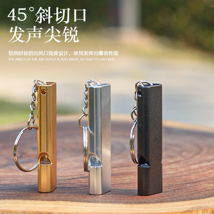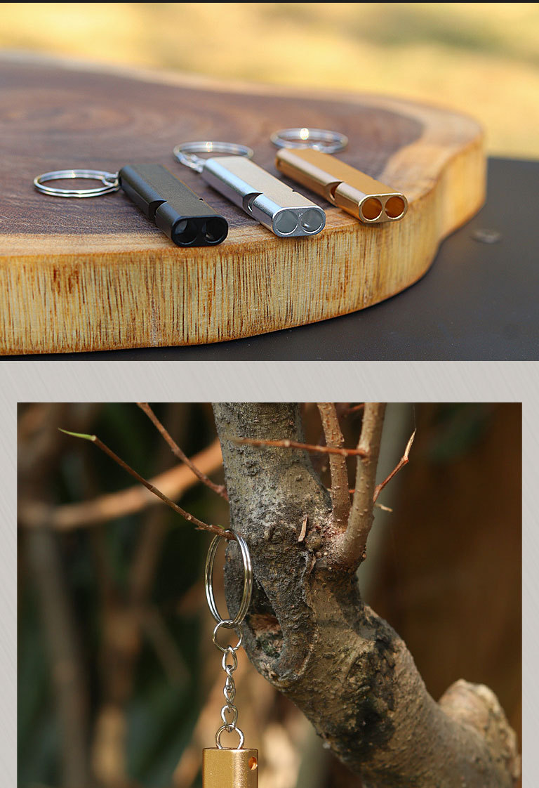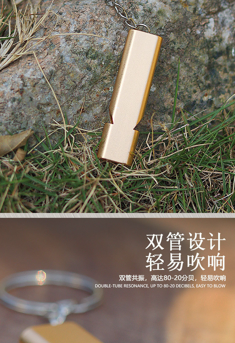 跨境扁铝合金双频求生口哨 双管户外生存救生哨子装备 EDC工具 投诉