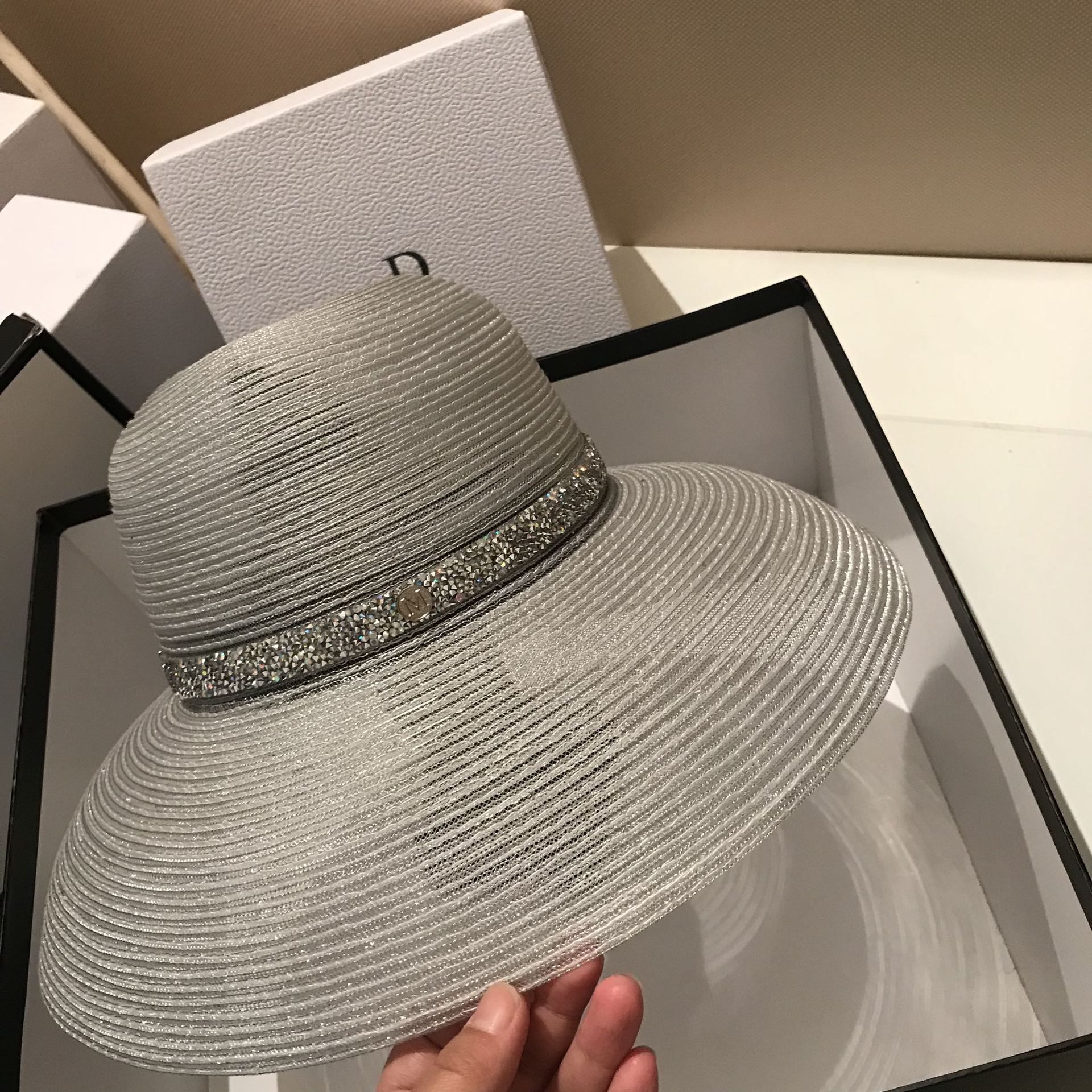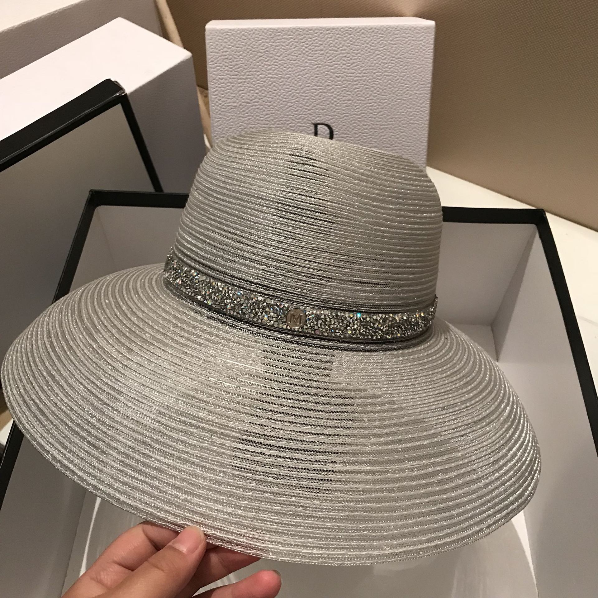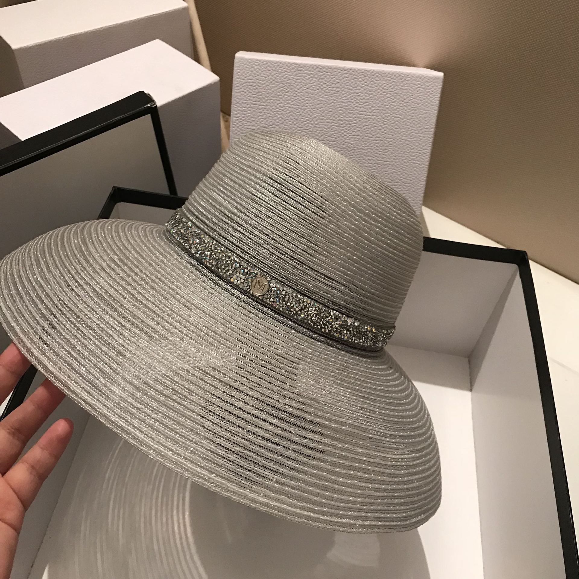 货源类别: 现货 品牌: 饰裳阁 产品类别: 草帽 适用性别: 女 材质: 草编 风格: 百搭 编织方法: 绉纹 加工方式: 其他 流行元素: 其他 图案: 单色 适合季节: 夏季,春季,秋季 是否外贸: 否 是否库存: 否 加印LOGO: 不可以 加工定制: 否 产地: 浙江 帽顶款式: 无顶 帽檐款式: 大檐 颜色: 银白色,黑色 尺码: 可调节 重量: 0.5 kg/件