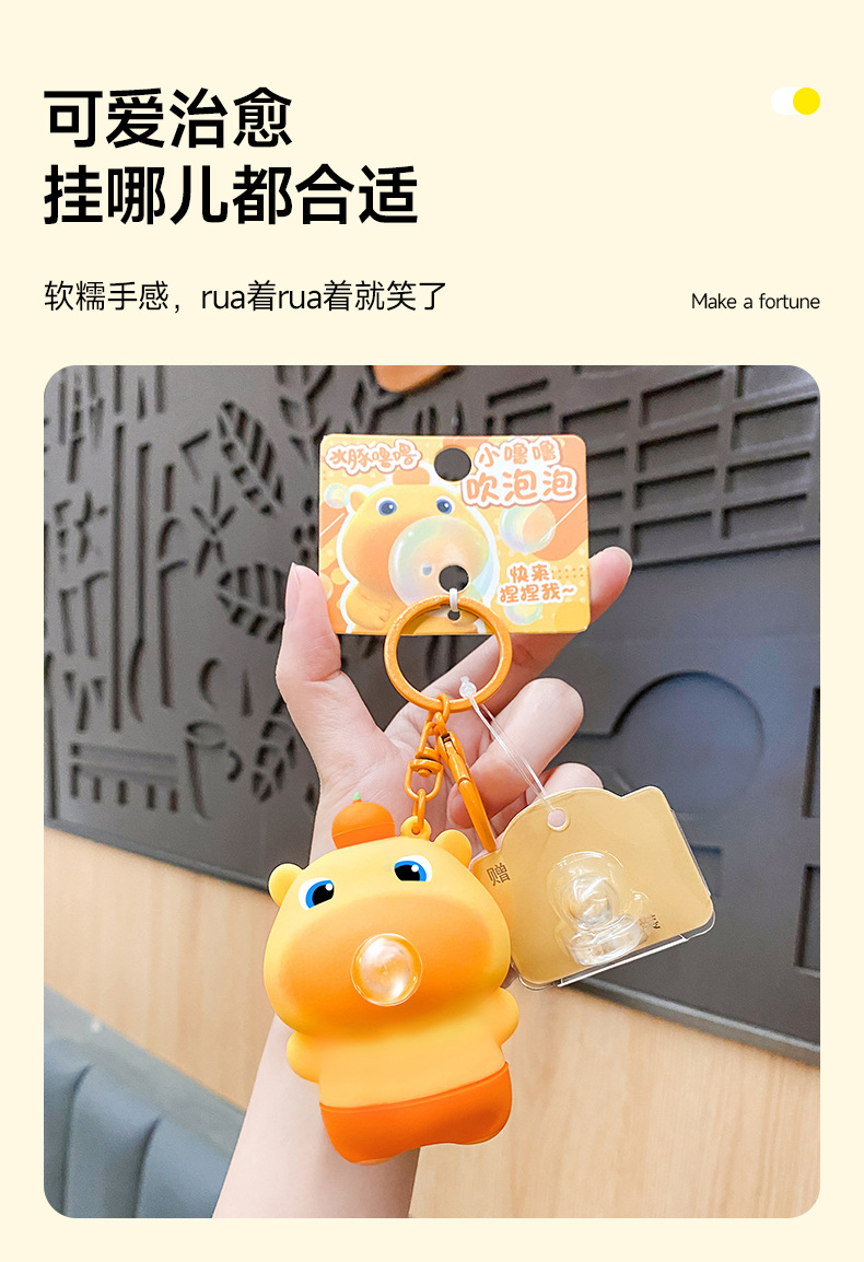 正版水豚噜噜捏捏乐吹吐泡泡解压钥匙扣女可爱书包挂件小饰品批发