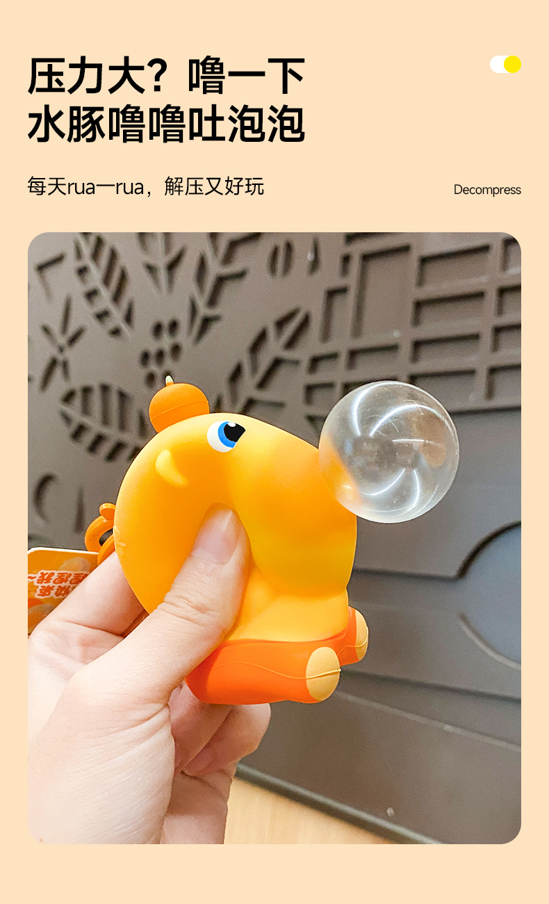 正版水豚噜噜捏捏乐吹吐泡泡解压钥匙扣女可爱书包挂件小饰品批发 English | 投诉