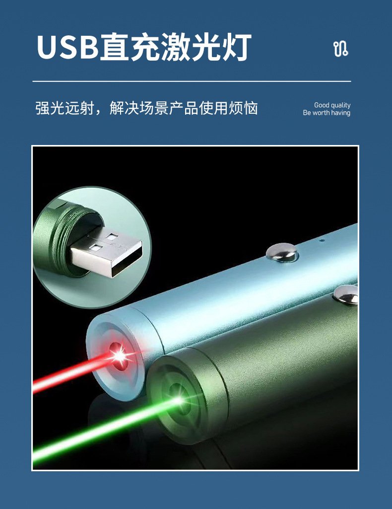 激光笔头红绿售楼沙盘笔USB充电迷你镭射灯教练教鞭指示激光手电